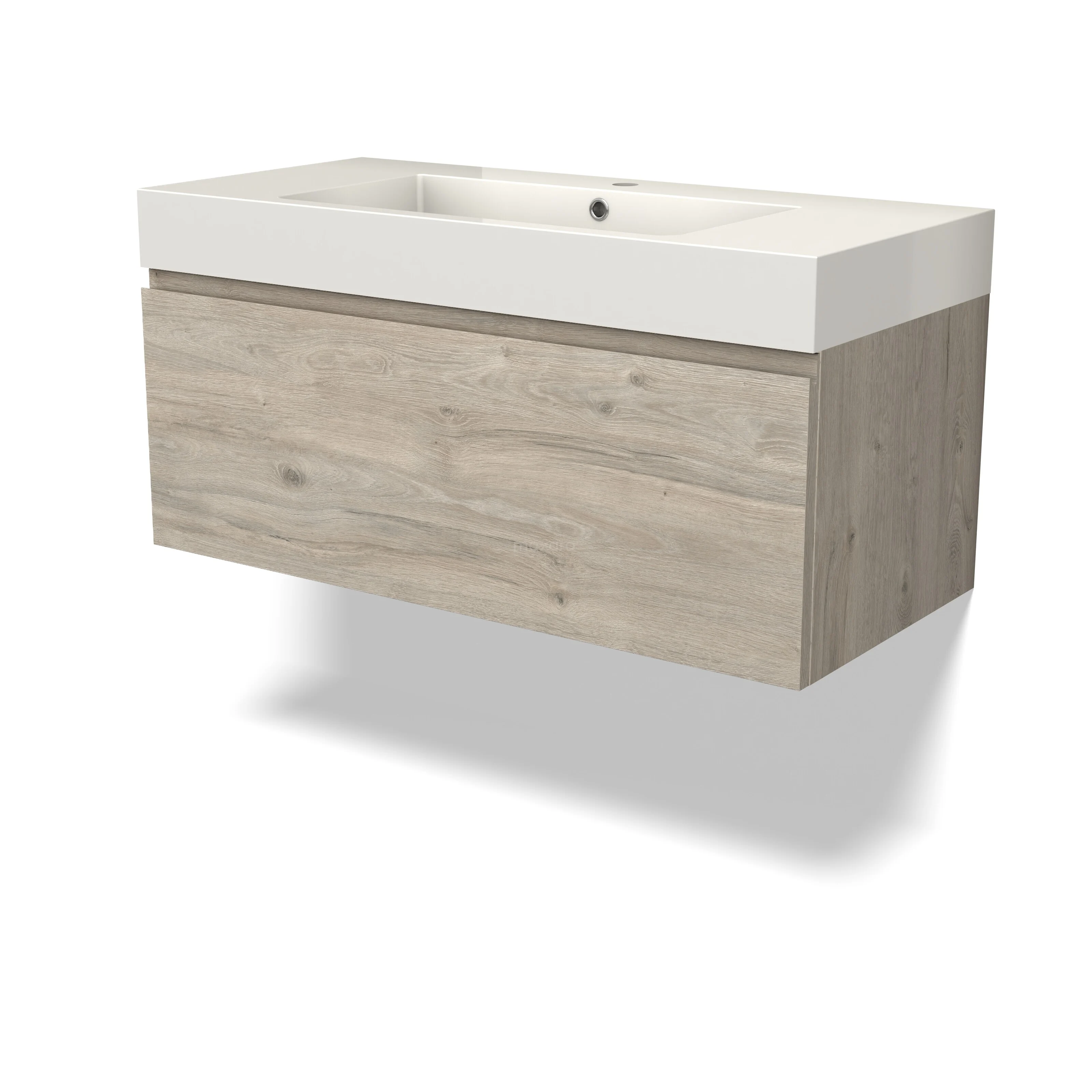 Modulo Badkamermeubel met wastafel | 100 cm Lichtgrijs eiken Greeploos front Mineraalmarmer 1 lade
