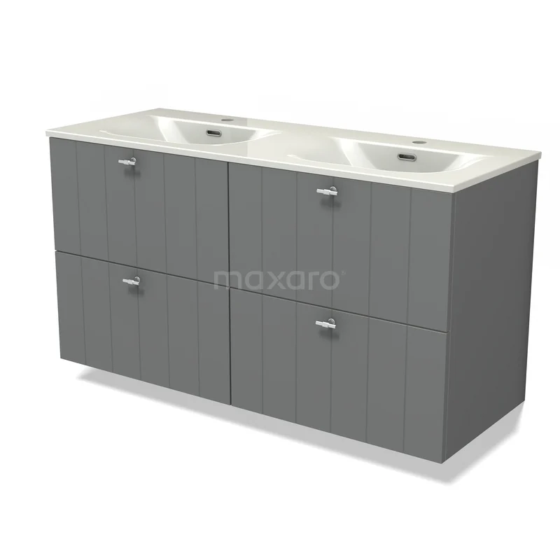 Modulo Badkamermeubel met wastafel | 120 cm Middengrijs Lamel front Keramiek 4 lades