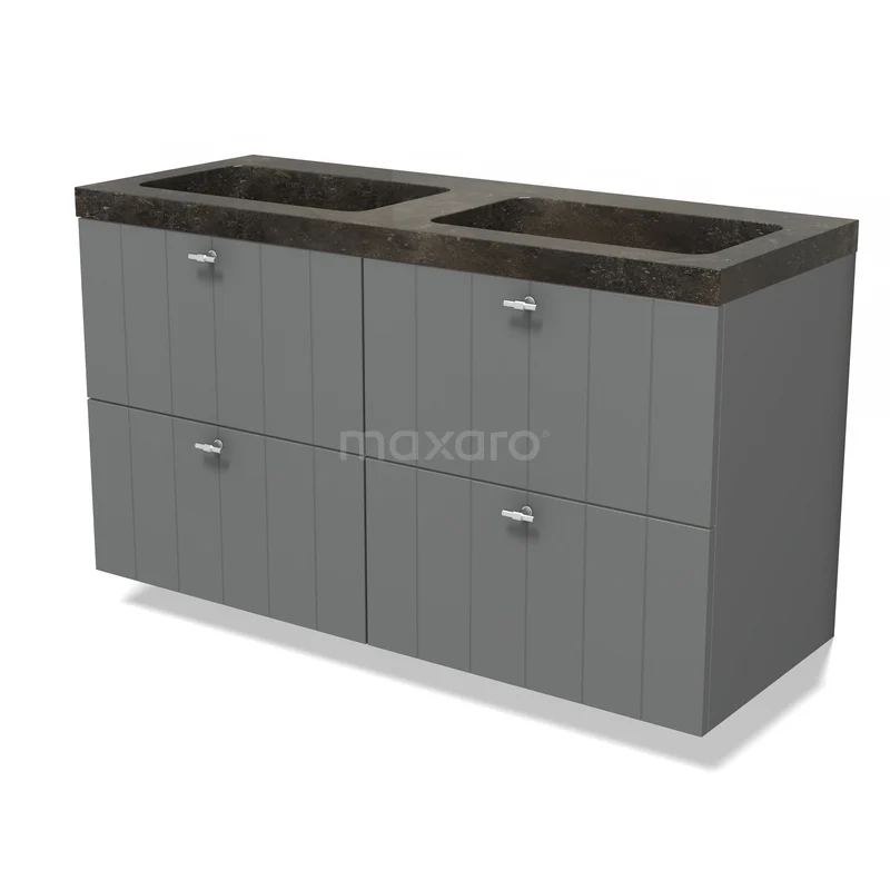 Modulo Badkamermeubel met wastafel | 120 cm Middengrijs Lamel front Natuursteen 4 lades