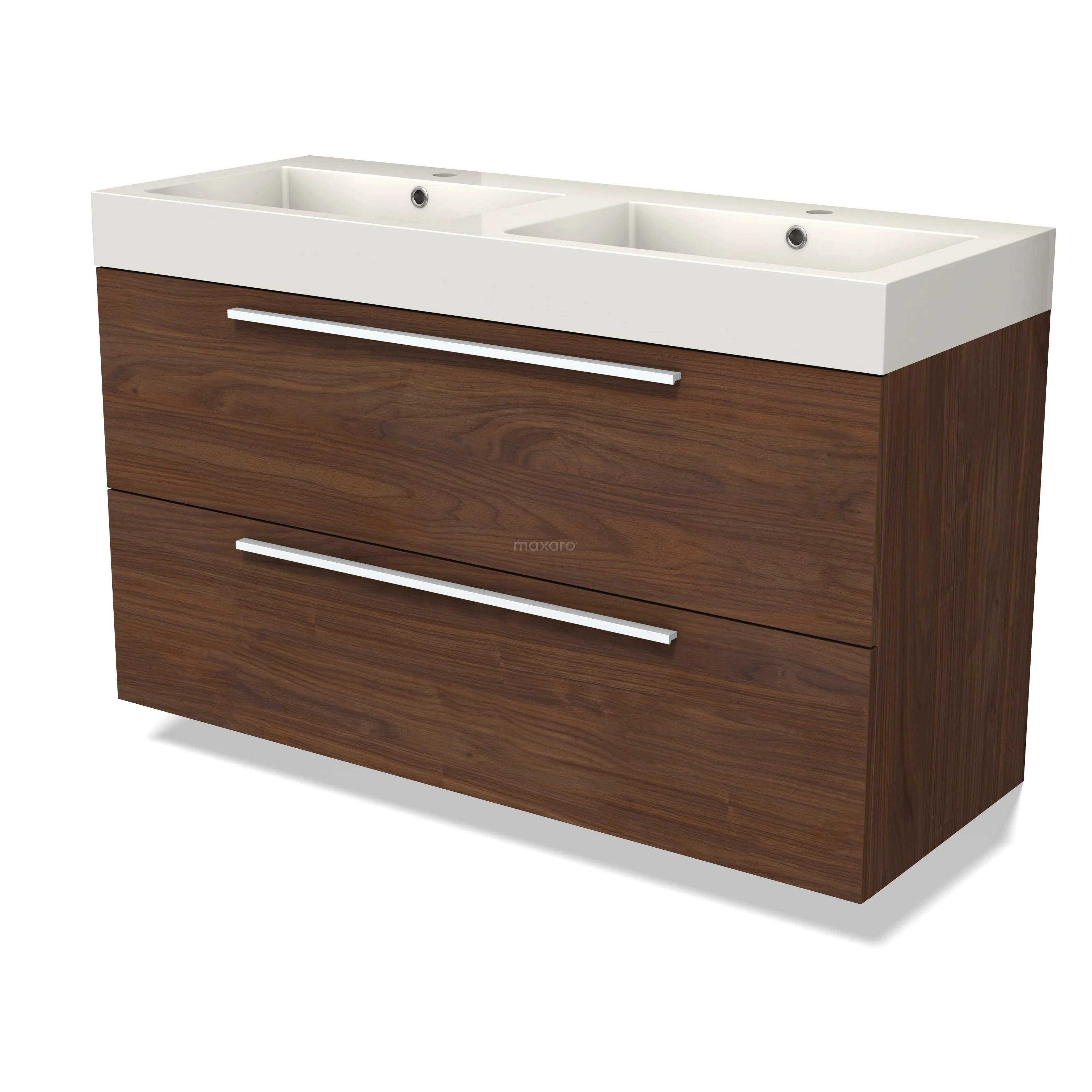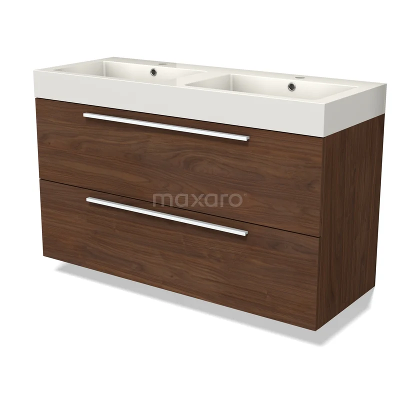 Modulo Badkamermeubel met wastafel | 120 cm Walnoot Vlak front Mineraalmarmer 2 lades onder elkaar
