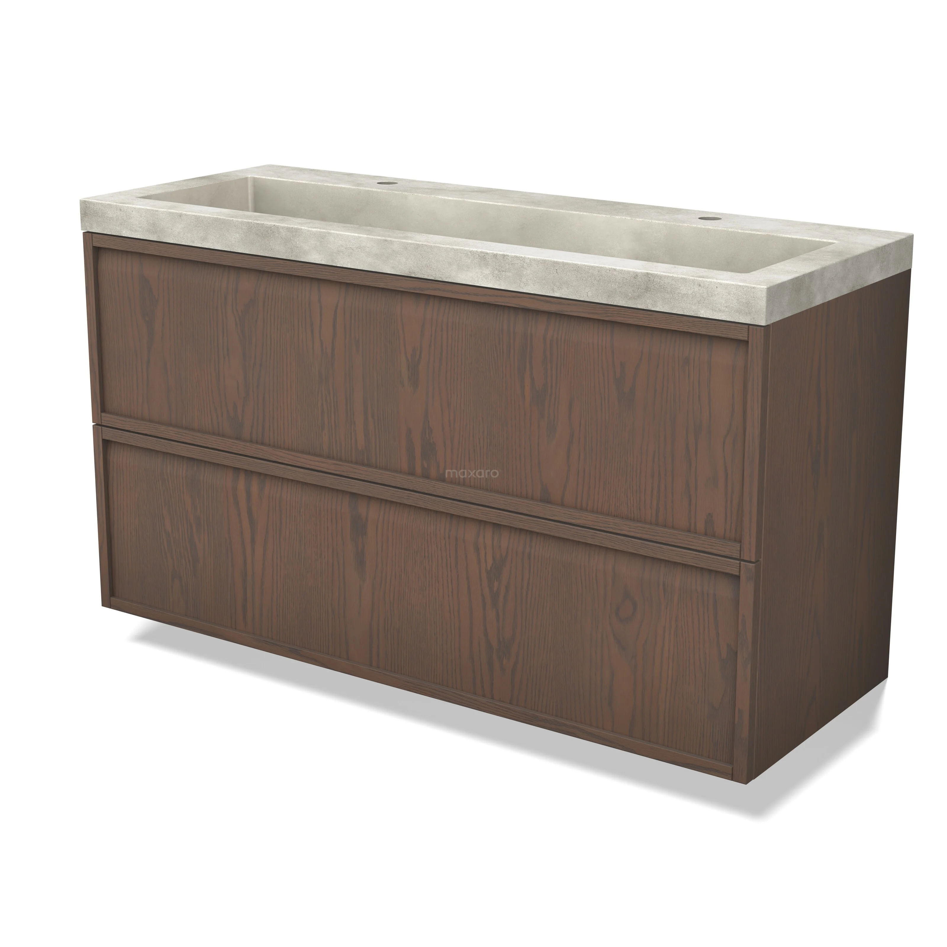 Modulo Plus Badkamermeubel met wastafel | 120 cm Cacao eik Frame front Beton 2 lades onder elkaar