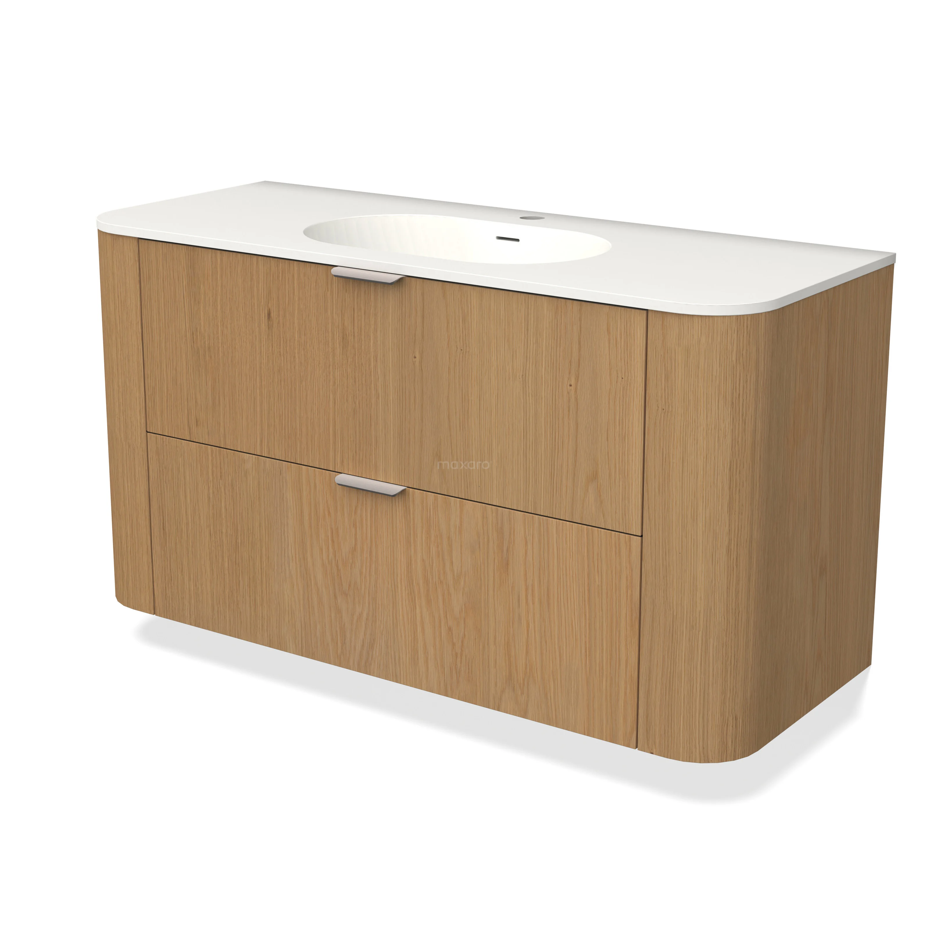 Modulo Plus Badkamermeubel met wastafel | 120 cm Honing eik front Solid surface 2 lades onder elkaar rond