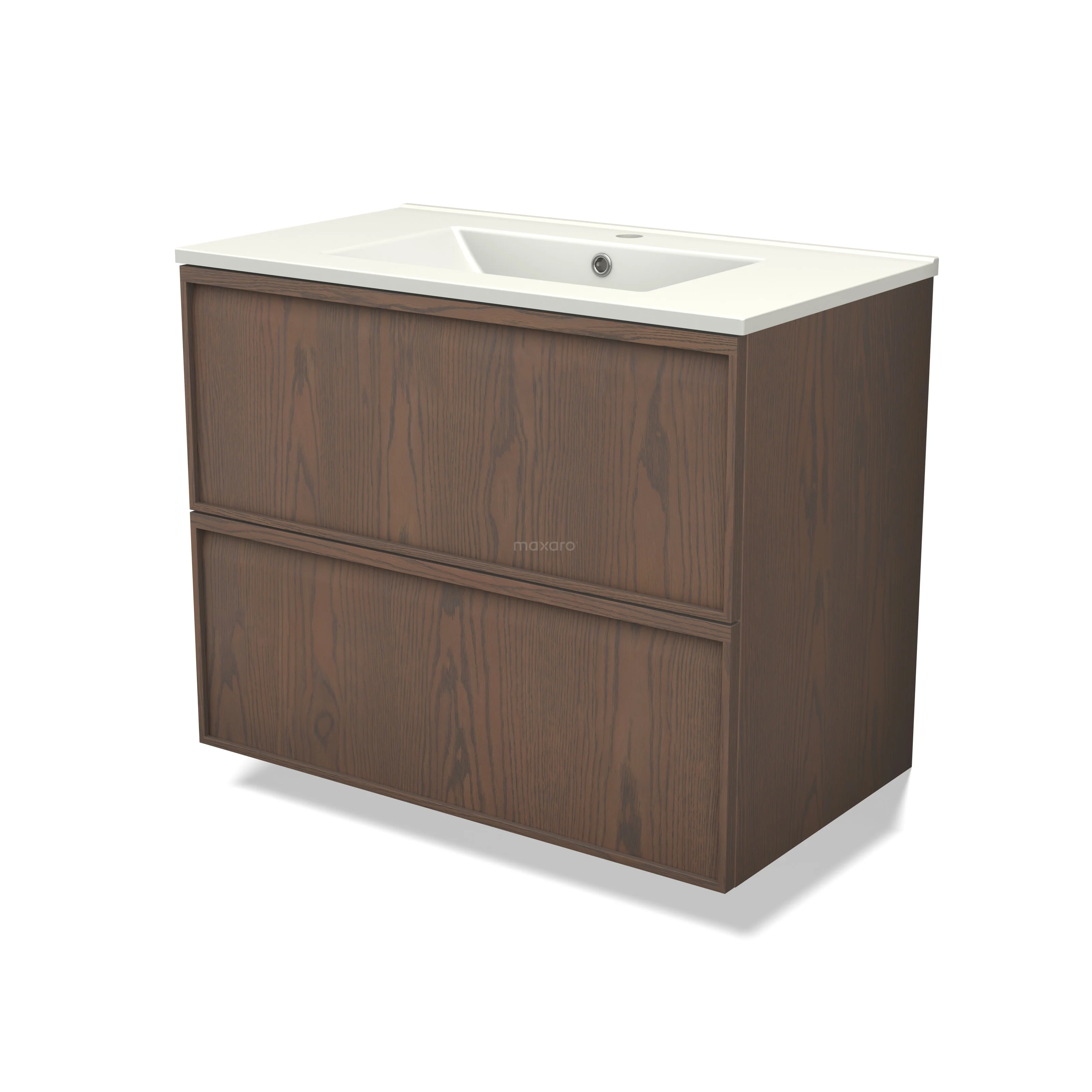 Modulo Plus Badkamermeubel met wastafel | 80 cm Cacao eik Lijst front Keramiek 2 lades onder elkaar
