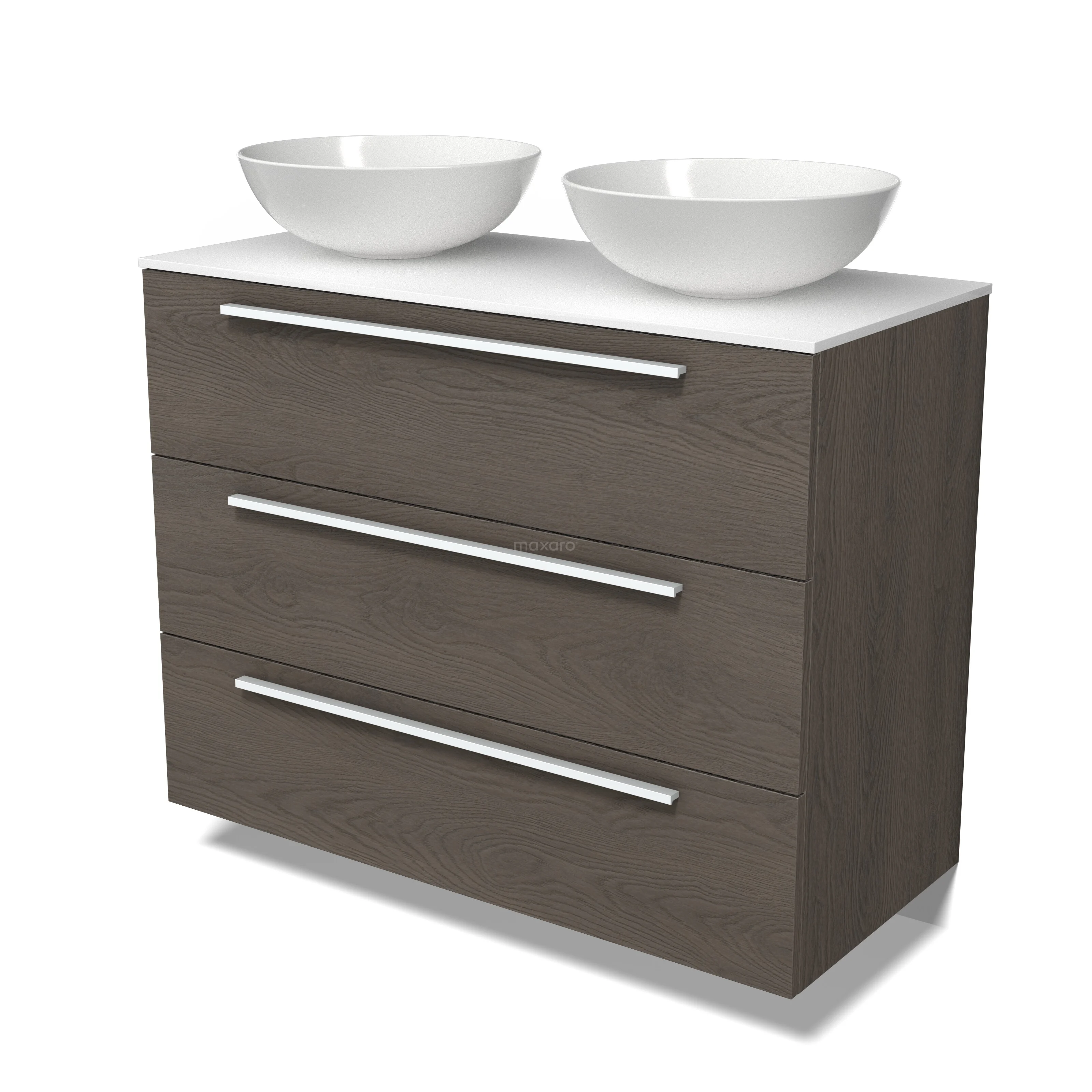 Modulo Plato Badkamermeubel voor waskom | 100 cm Donkerbruin eiken Vlak front Solid surface blad 3 lades