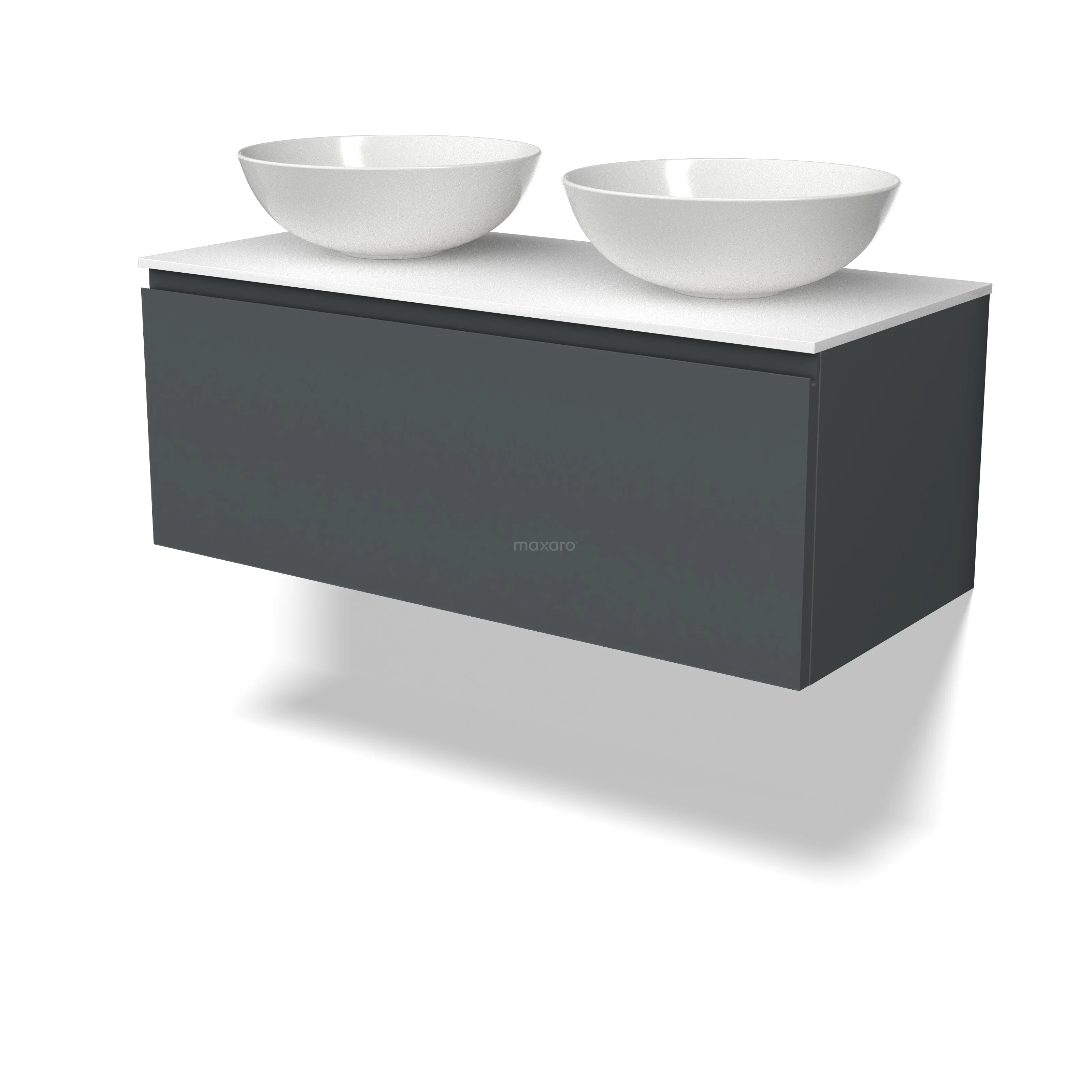 Modulo Plato Badkamermeubel voor waskom | 100 cm Donkergrijs Greeploos front Solid surface blad 1 lade
