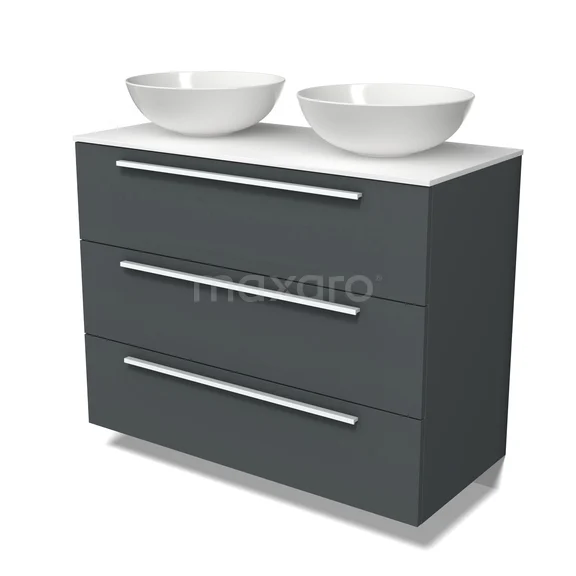 Modulo Plato Badkamermeubel voor waskom | 100 cm Donkergrijs Vlak front Solid surface blad 3 lades