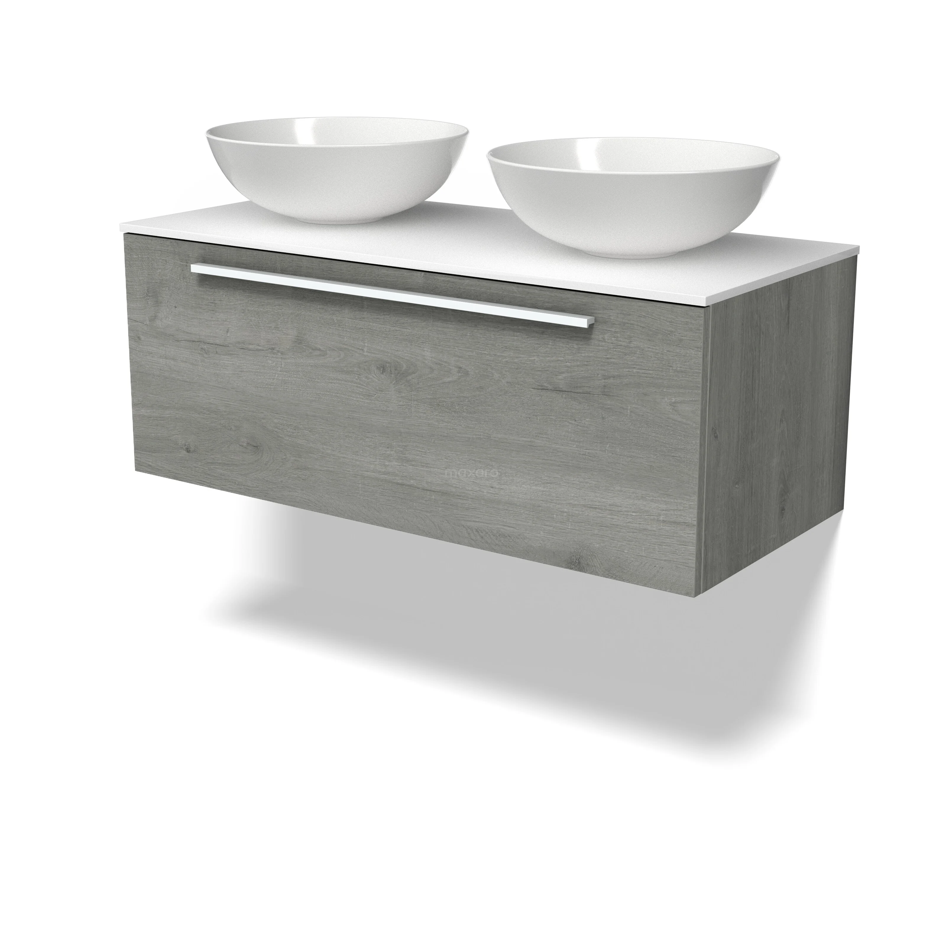 Modulo Plato Badkamermeubel voor waskom | 100 cm Grijs eiken Vlak front Solid surface blad 1 lade