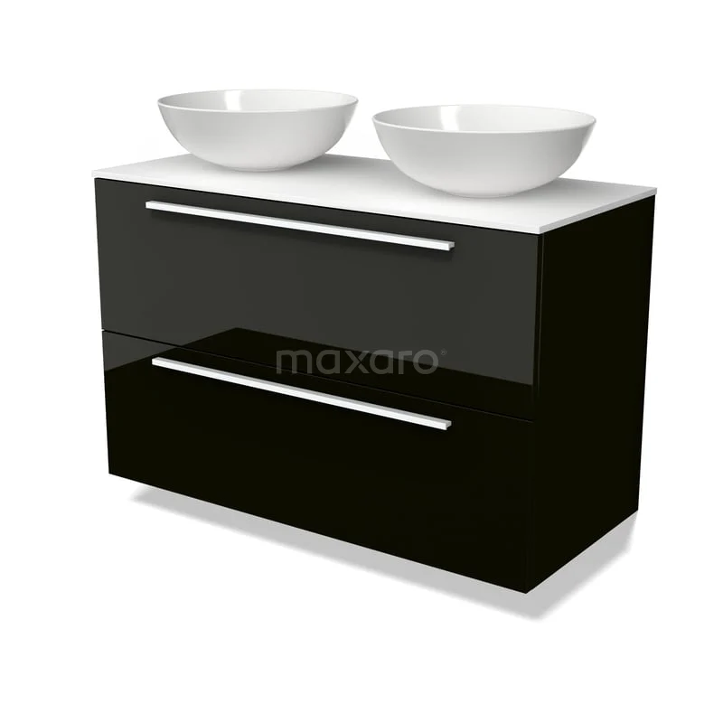 Modulo Plato Badkamermeubel voor waskom | 100 cm Hoogglans zwart Vlak front Solid surface blad 2 lades onder elkaar