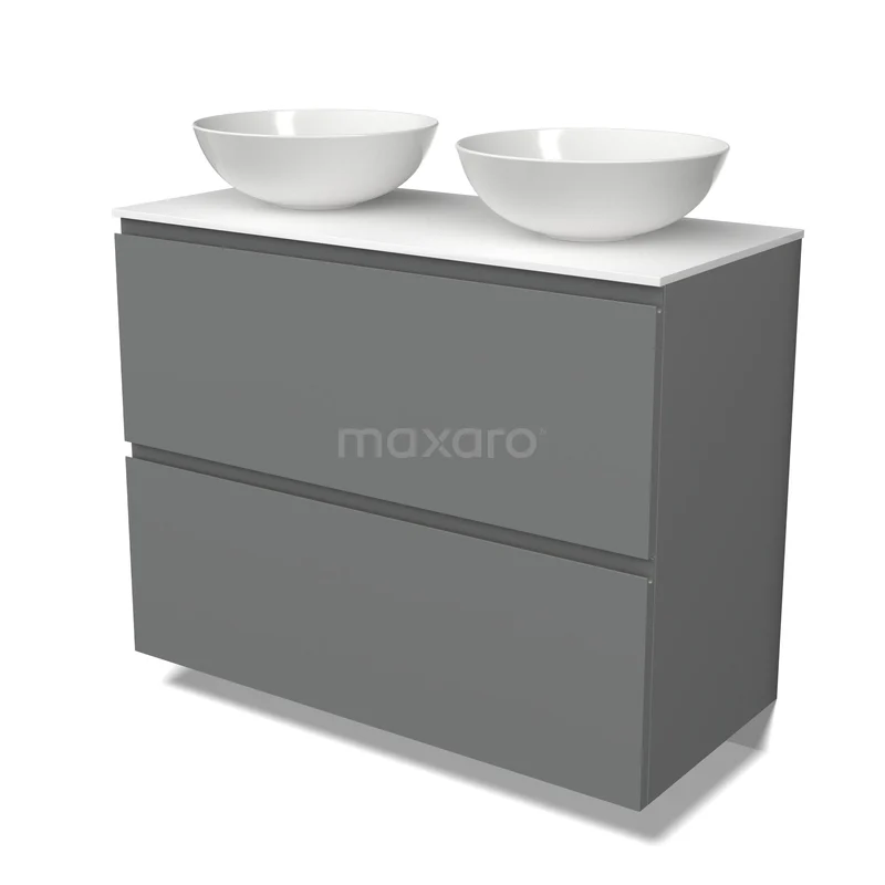 Modulo Plato Badkamermeubel voor waskom | 100 cm Middengrijs Greeploos front Solid surface blad 2 hoge lades onder elkaar