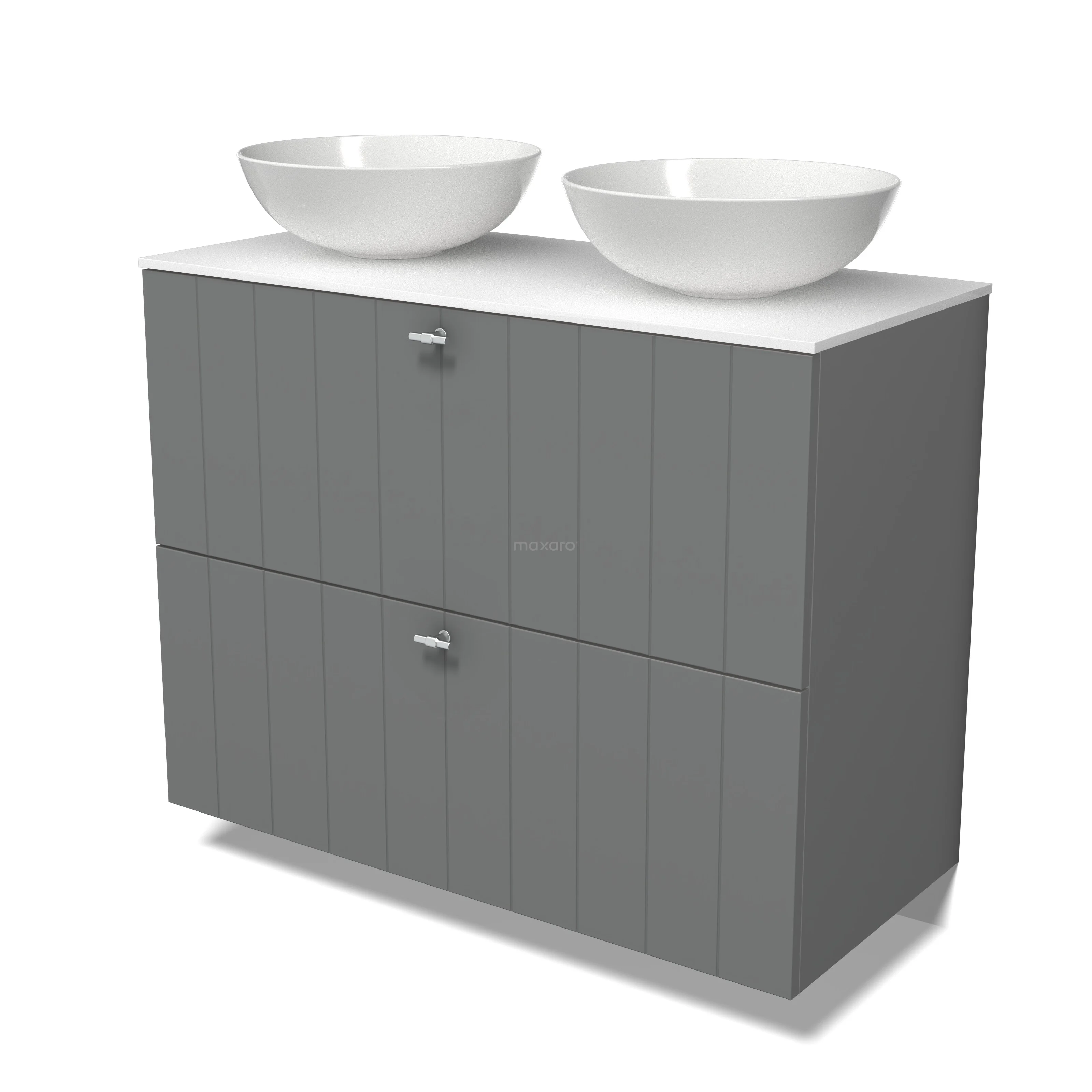 Modulo Plato Badkamermeubel voor waskom | 100 cm Middengrijs Lamel front Solid surface blad 2 hoge lades onder elkaar