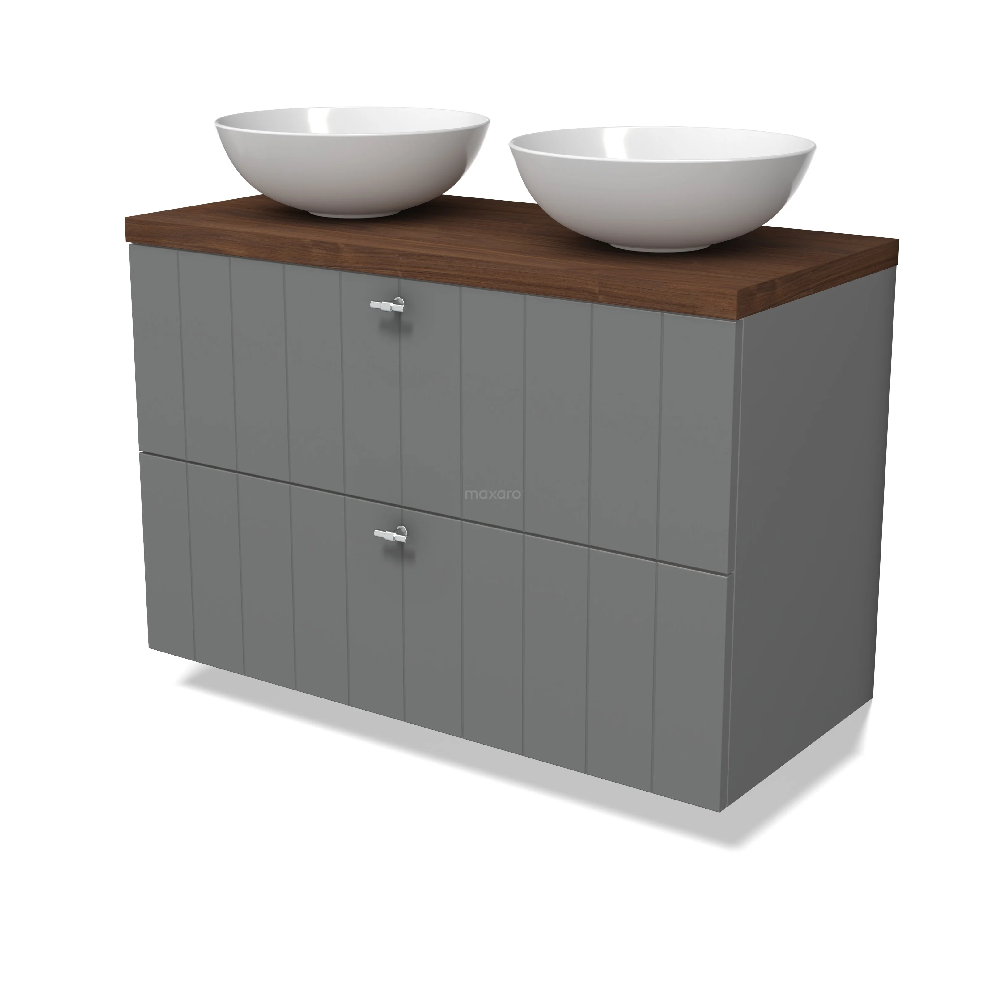 Modulo Plato Badkamermeubel voor waskom | 100 cm Middengrijs Lamel front Walnoot blad 2 lades onder elkaar