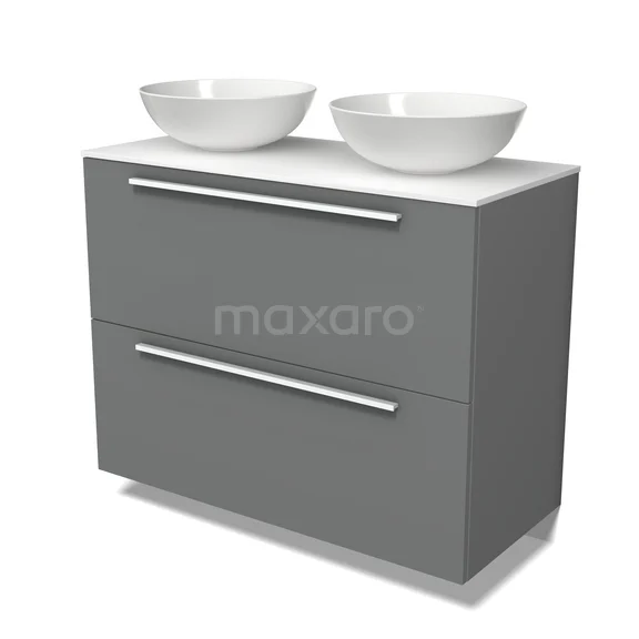 Modulo Plato Badkamermeubel voor waskom | 100 cm Middengrijs Vlak front Solid surface blad 2 hoge lades onder elkaar