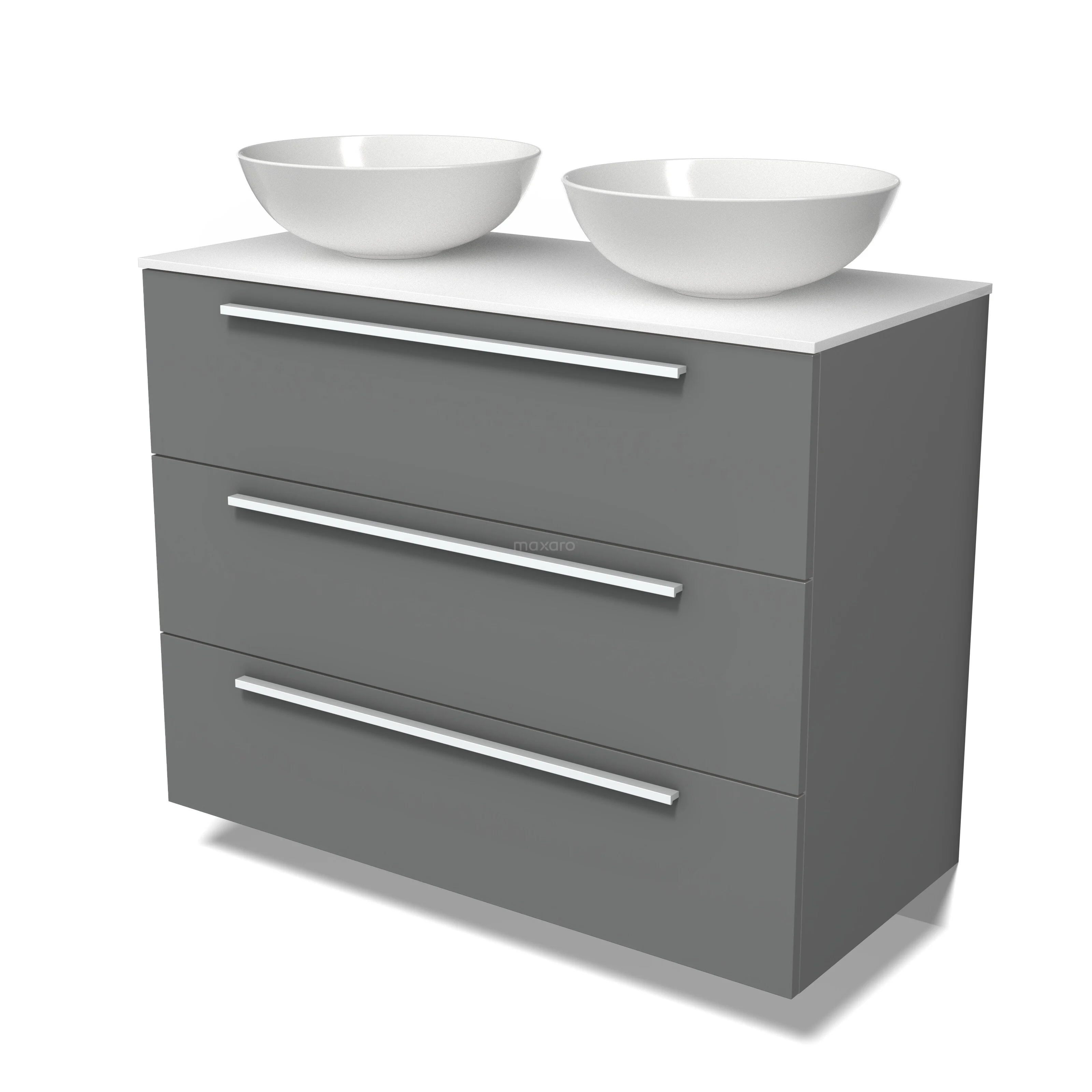 Modulo Plato Badkamermeubel voor waskom | 100 cm Middengrijs Vlak front Solid surface blad 3 lades