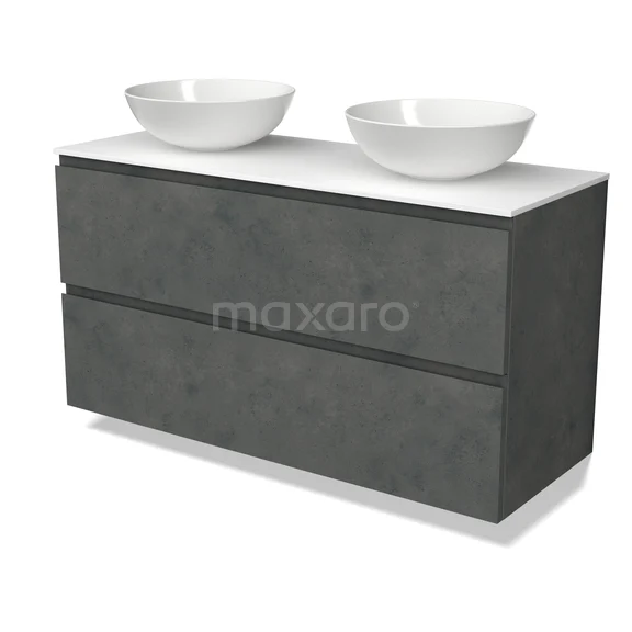Modulo Plato Badkamermeubel voor waskom | 120 cm Donkergrijs beton Greeploos front Solid surface blad 2 lades onder elkaar