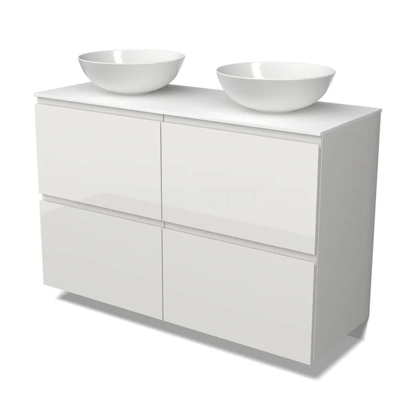 Modulo Plato Badkamermeubel voor waskom | 120 cm Hoogglans wit Greeploos front Solid surface blad 4 hoge lades