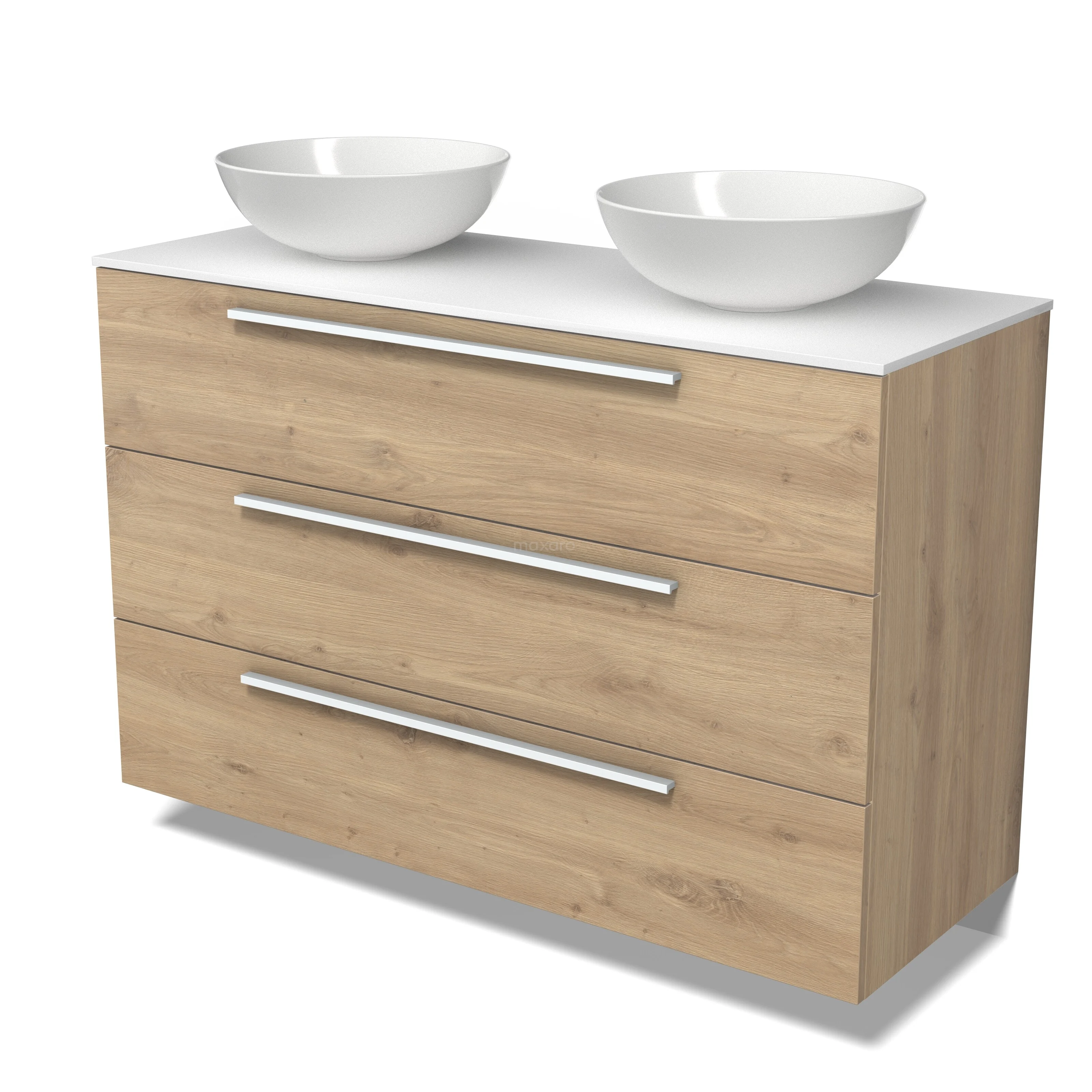Modulo Plato Badkamermeubel voor waskom | 120 cm Lichtbruin eiken Vlak front Solid surface blad 3 lades