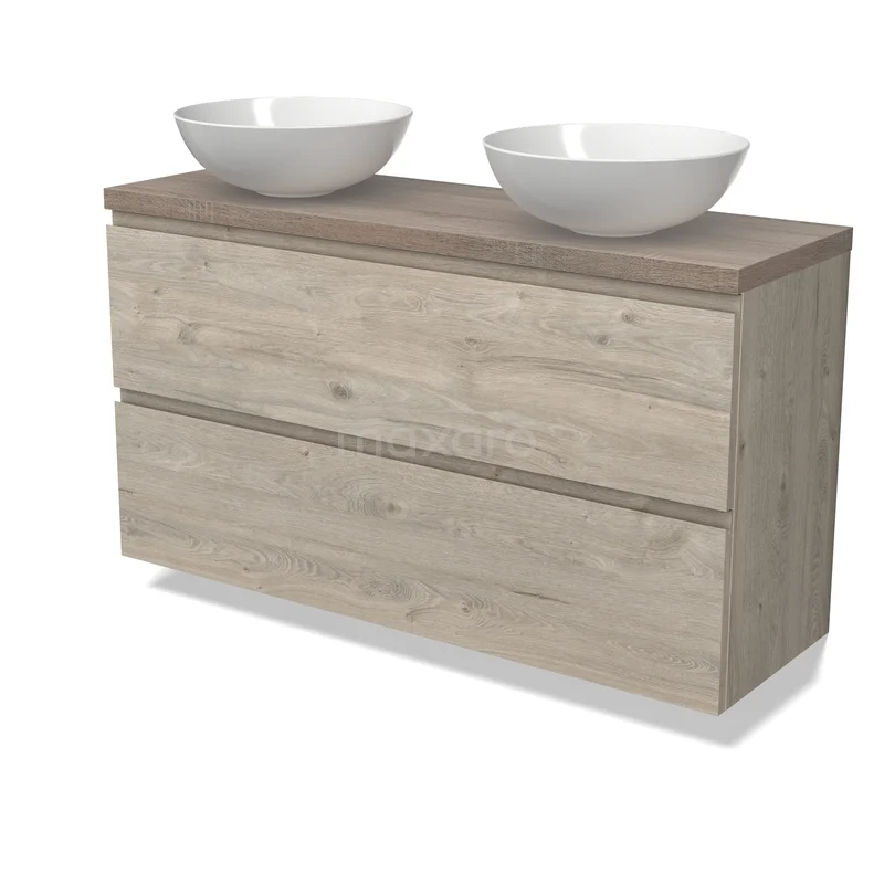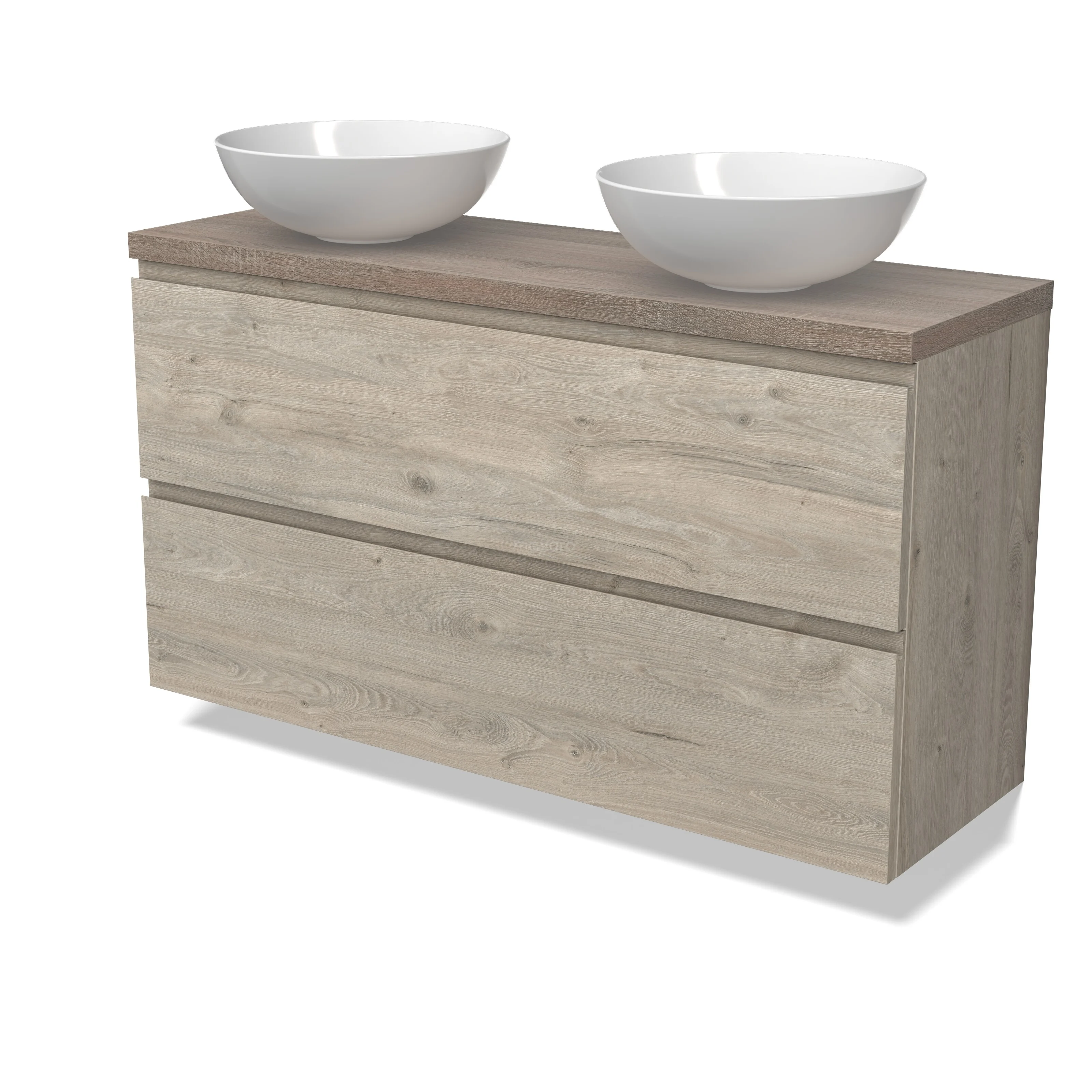 Modulo Plato Badkamermeubel voor waskom | 120 cm Lichtgrijs eiken Greeploos front Eiken blad 2 lades onder elkaar
