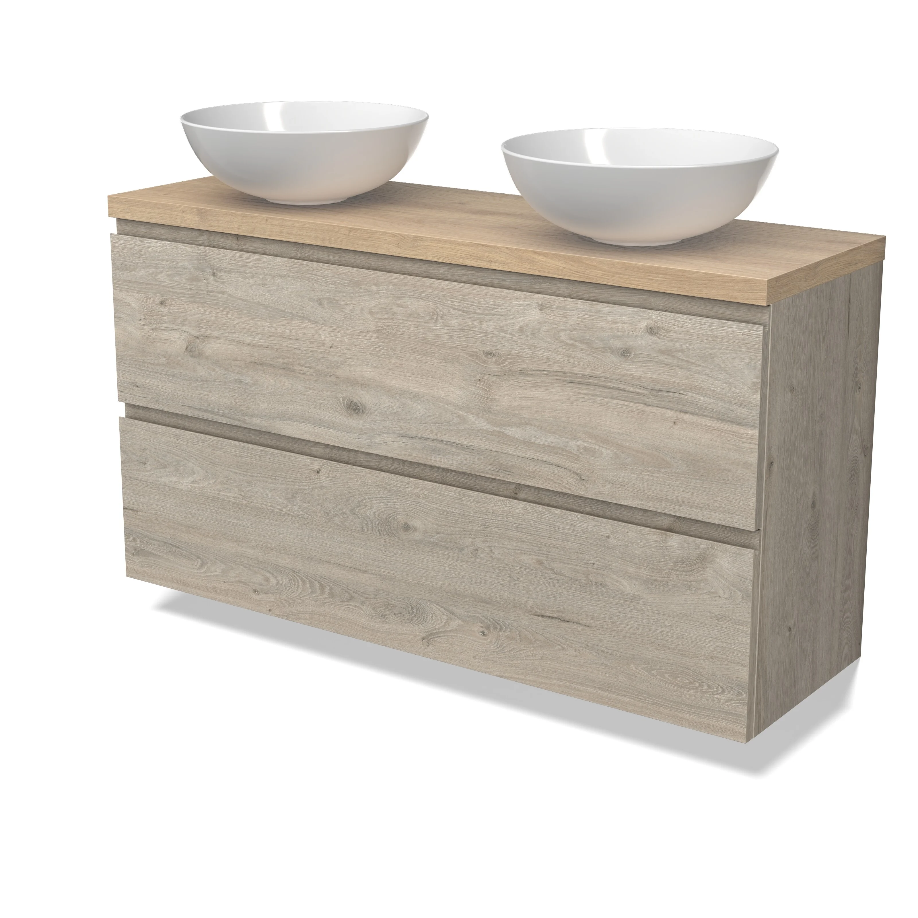 Modulo Plato Badkamermeubel voor waskom | 120 cm Lichtgrijs eiken Greeploos front Lichtbruin eiken blad 2 lades onder elkaar