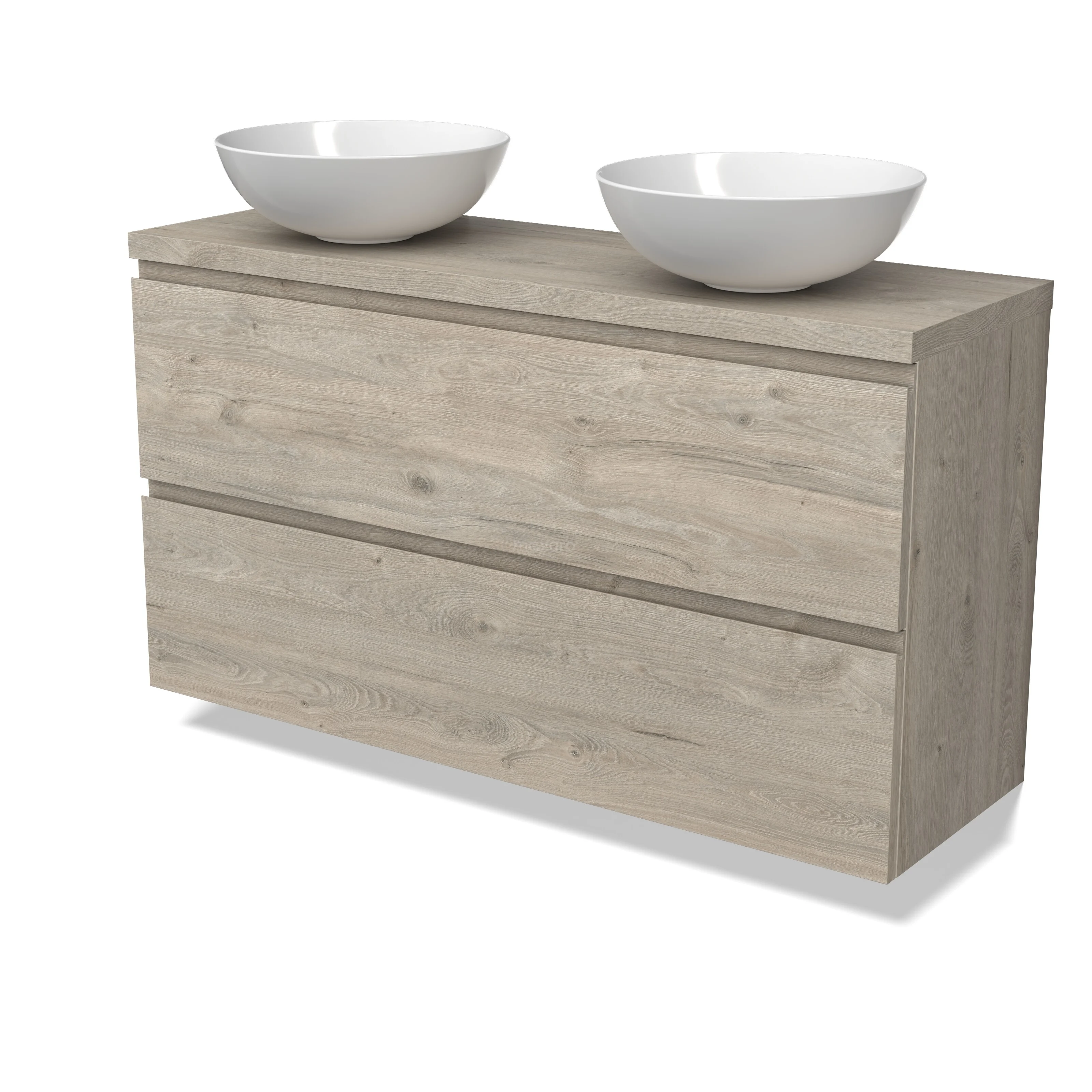 Modulo Plato Badkamermeubel voor waskom | 120 cm Lichtgrijs eiken Greeploos front Lichtgrijs eiken blad 2 lades onder elkaar