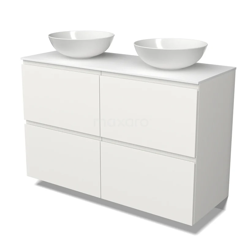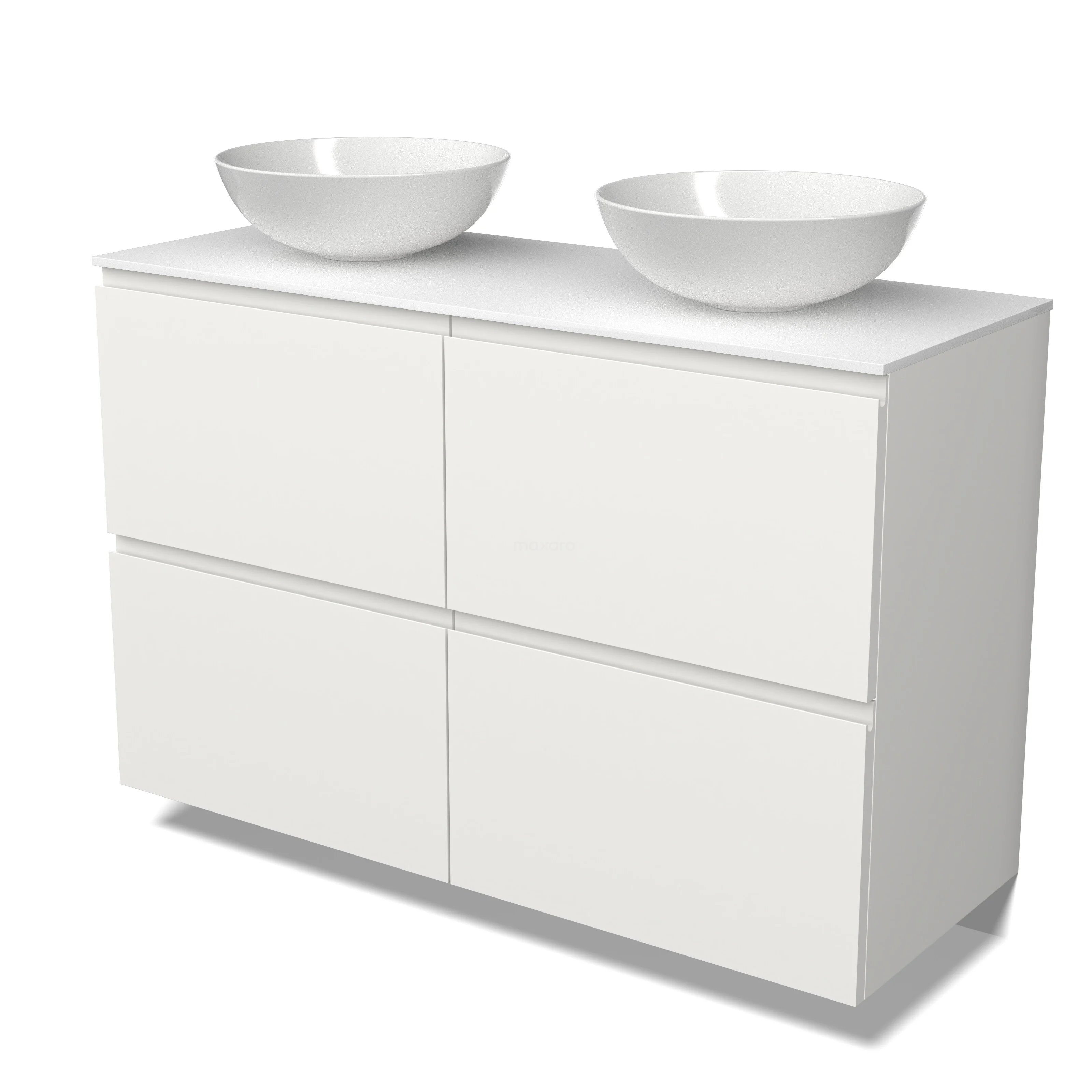 Modulo Plato Badkamermeubel voor waskom | 120 cm Mat wit Greeploos front Solid surface blad 4 hoge lades