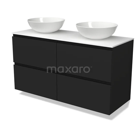 Modulo Plato Badkamermeubel voor waskom | 120 cm Mat zwart Greeploos front Solid surface blad 4 lades