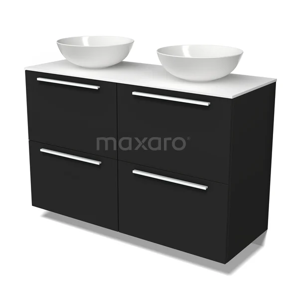 Modulo Plato Badkamermeubel voor waskom | 120 cm Mat zwart Vlak front Solid surface blad 4 hoge lades