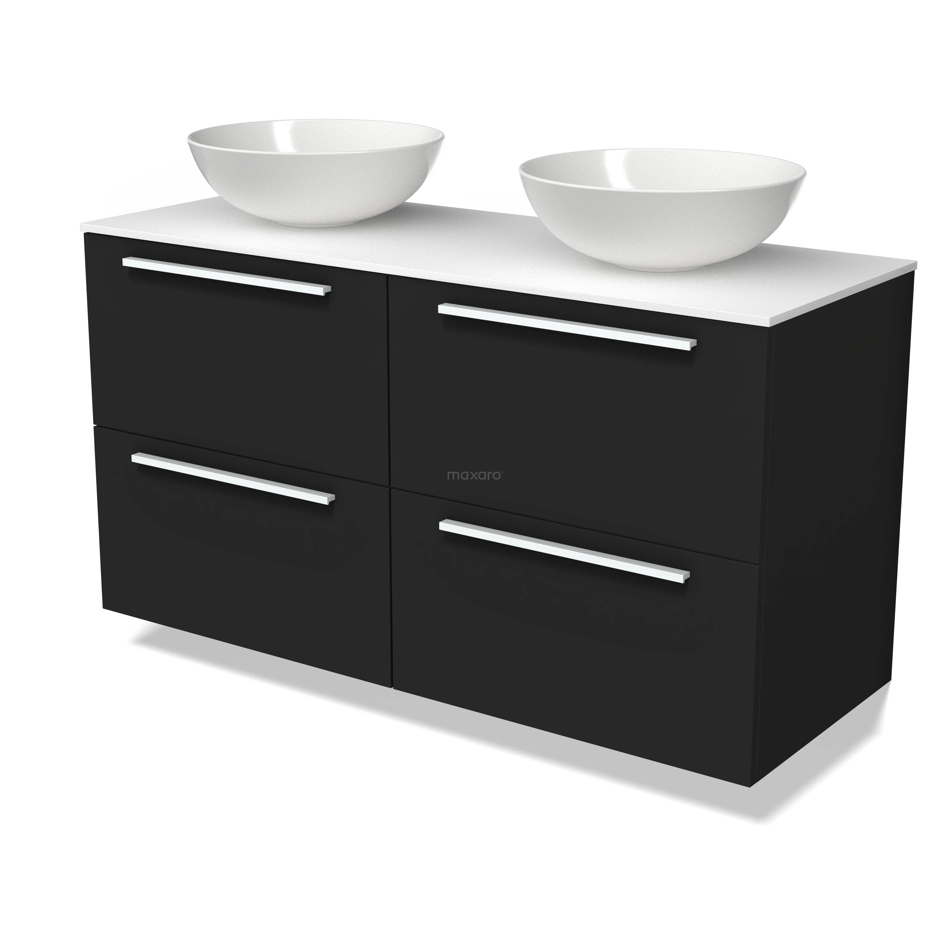 Modulo Plato Badkamermeubel voor waskom | 120 cm Mat zwart Vlak front Solid surface blad 4 lades