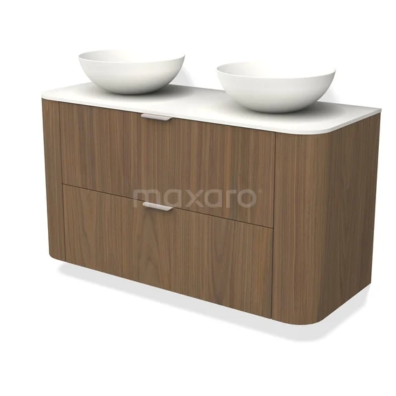 Modulo Plato Badkamermeubel voor waskom | 120 cm Notenhout front Solid surface blad 2 lades onder elkaar rond