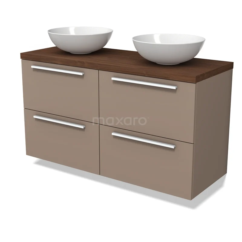 Modulo Plato Badkamermeubel voor waskom | 120 cm Taupe Vlak front Walnoot blad 4 lades