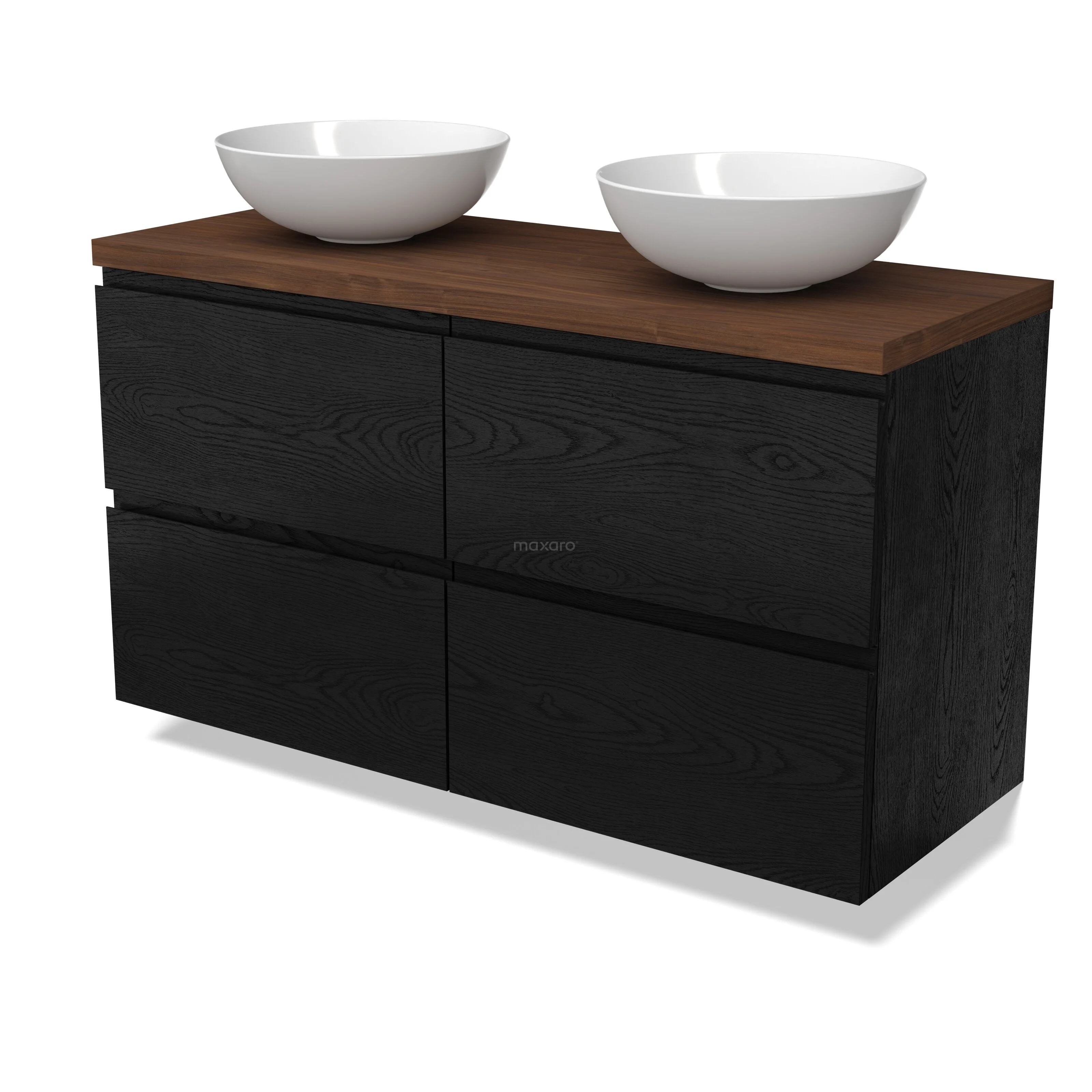 Modulo Plato Badkamermeubel voor waskom | 120 cm Zwart eiken Greeploos front Walnoot blad 4 lades