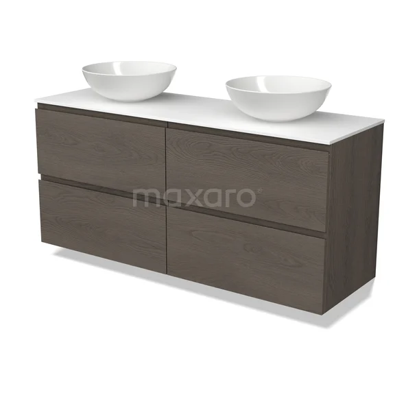 Modulo Plato Badkamermeubel voor waskom | 140 cm Donkerbruin eiken Greeploos front Solid surface blad 4 lades