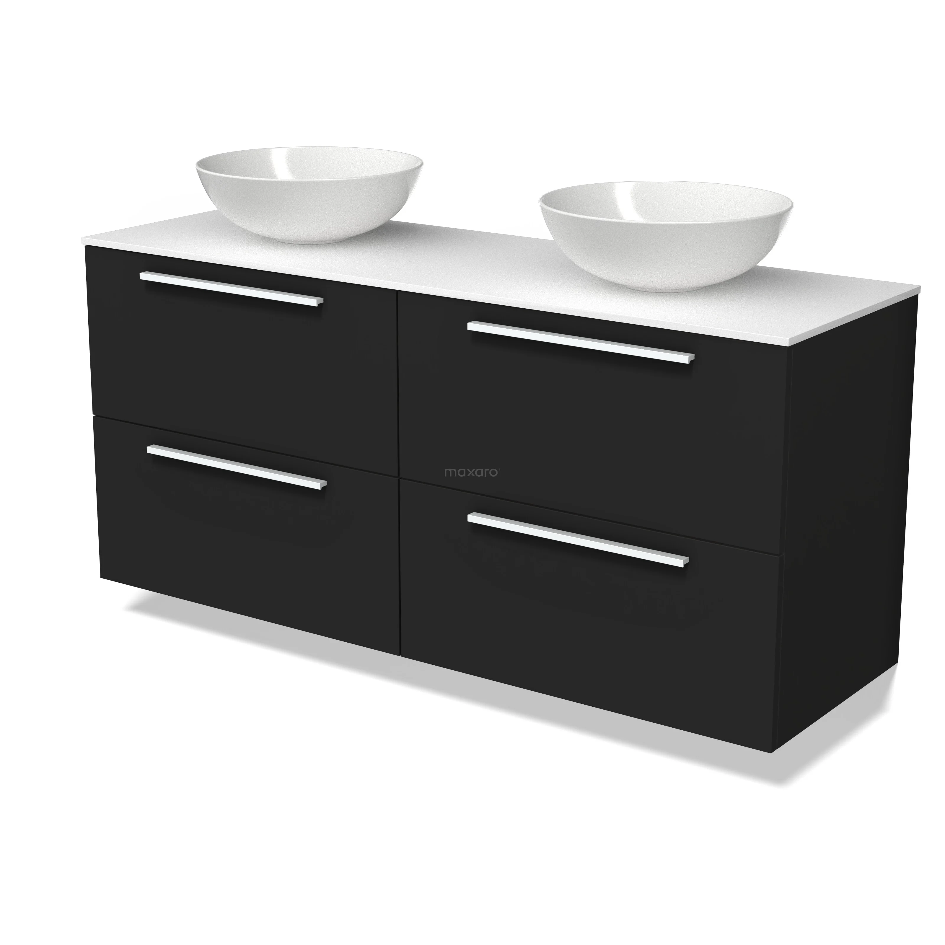 Modulo Plato Badkamermeubel voor waskom | 140 cm Mat zwart Vlak front Solid surface blad 4 lades