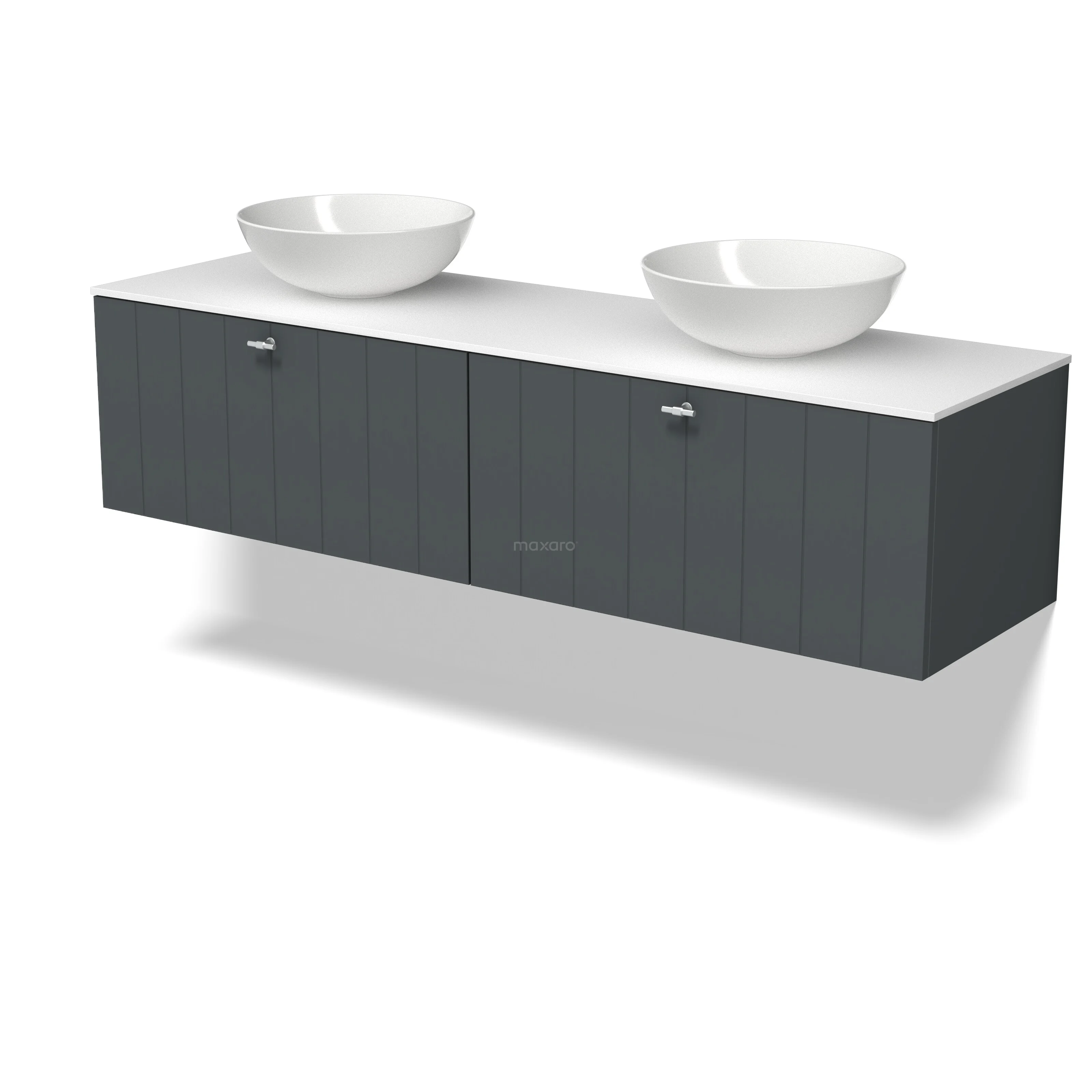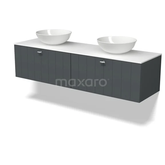 Modulo Plato Badkamermeubel voor waskom | 160 cm Donkergrijs Lamel front Solid surface blad 2 lades naast elkaar