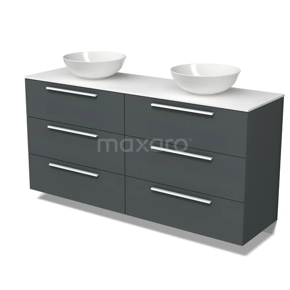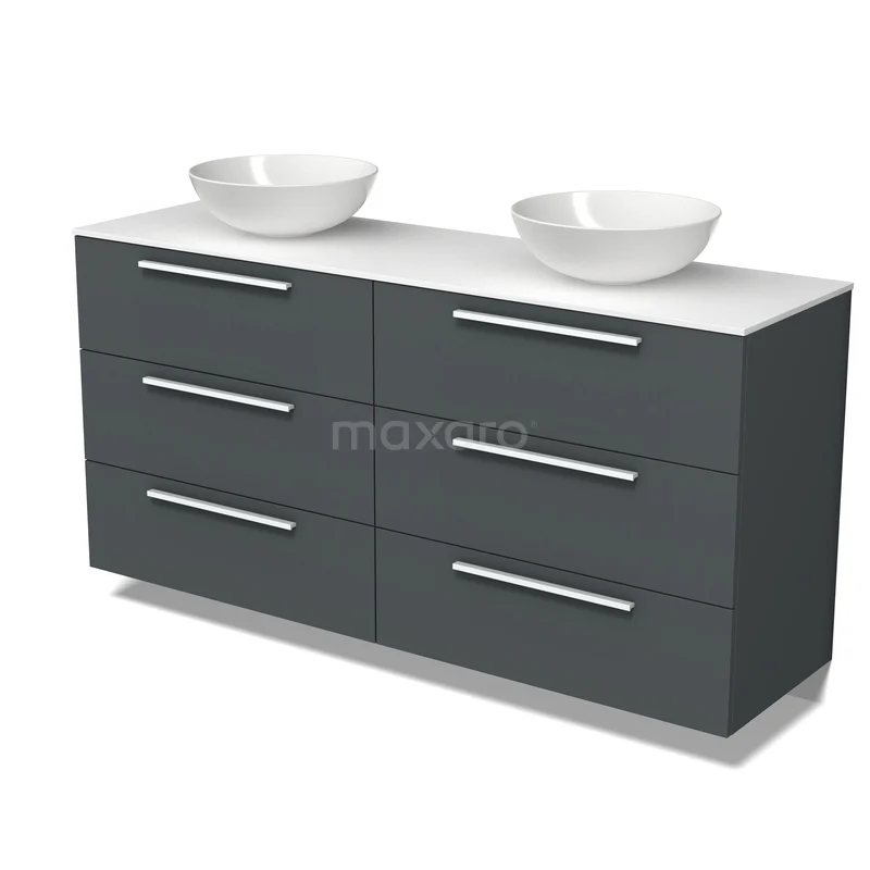 Modulo Plato Badkamermeubel voor waskom | 160 cm Donkergrijs Vlak front Solid surface blad 6 lades