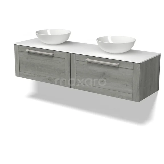 Modulo Plato Badkamermeubel voor waskom | 160 cm Grijs eiken Kader front Solid surface blad 2 lades naast elkaar