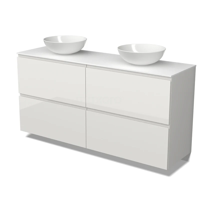 Modulo Plato Badkamermeubel voor waskom | 160 cm Hoogglans wit Greeploos front Solid surface blad 4 hoge lades