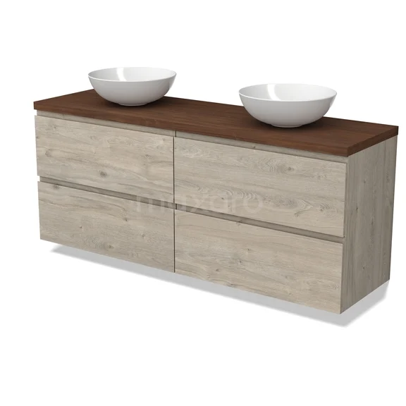 Modulo Plato Badkamermeubel voor waskom | 160 cm Lichtgrijs eiken Greeploos front Walnoot blad 4 lades