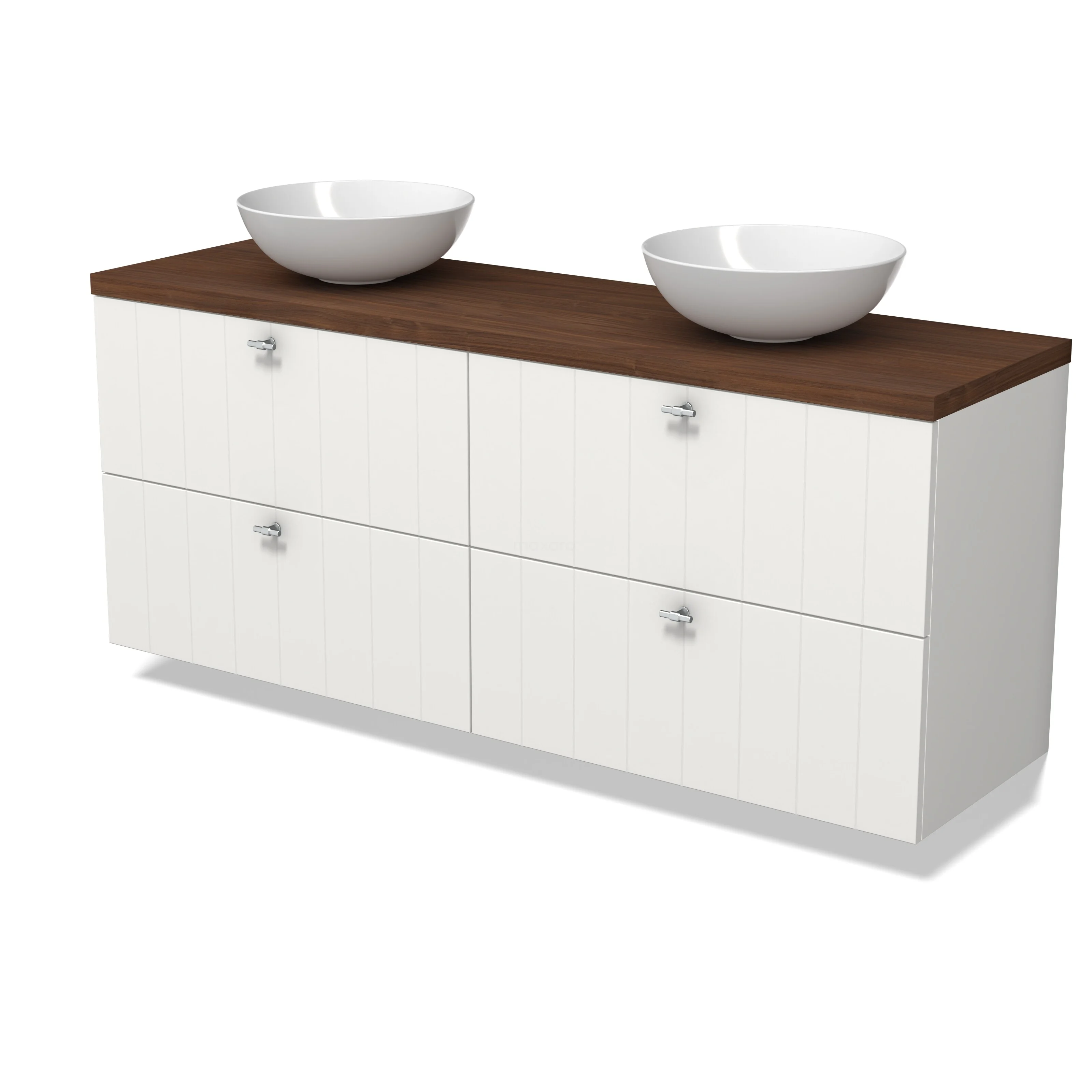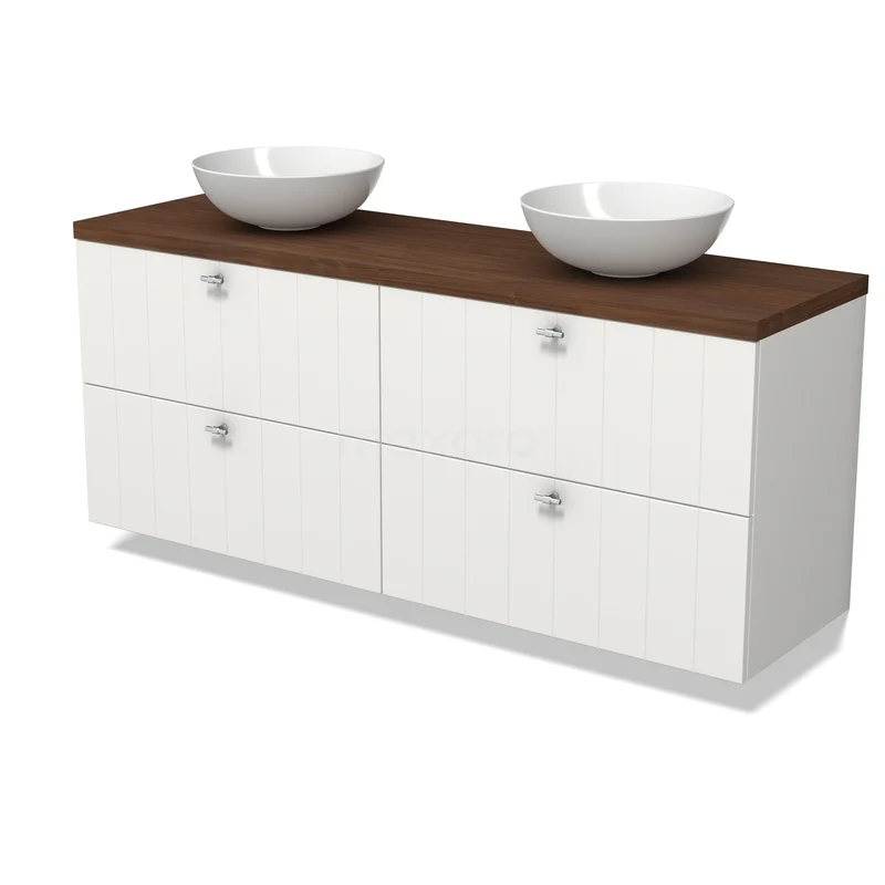 Modulo Plato Badkamermeubel voor waskom | 160 cm Mat wit Lamel front Walnoot blad 4 lades