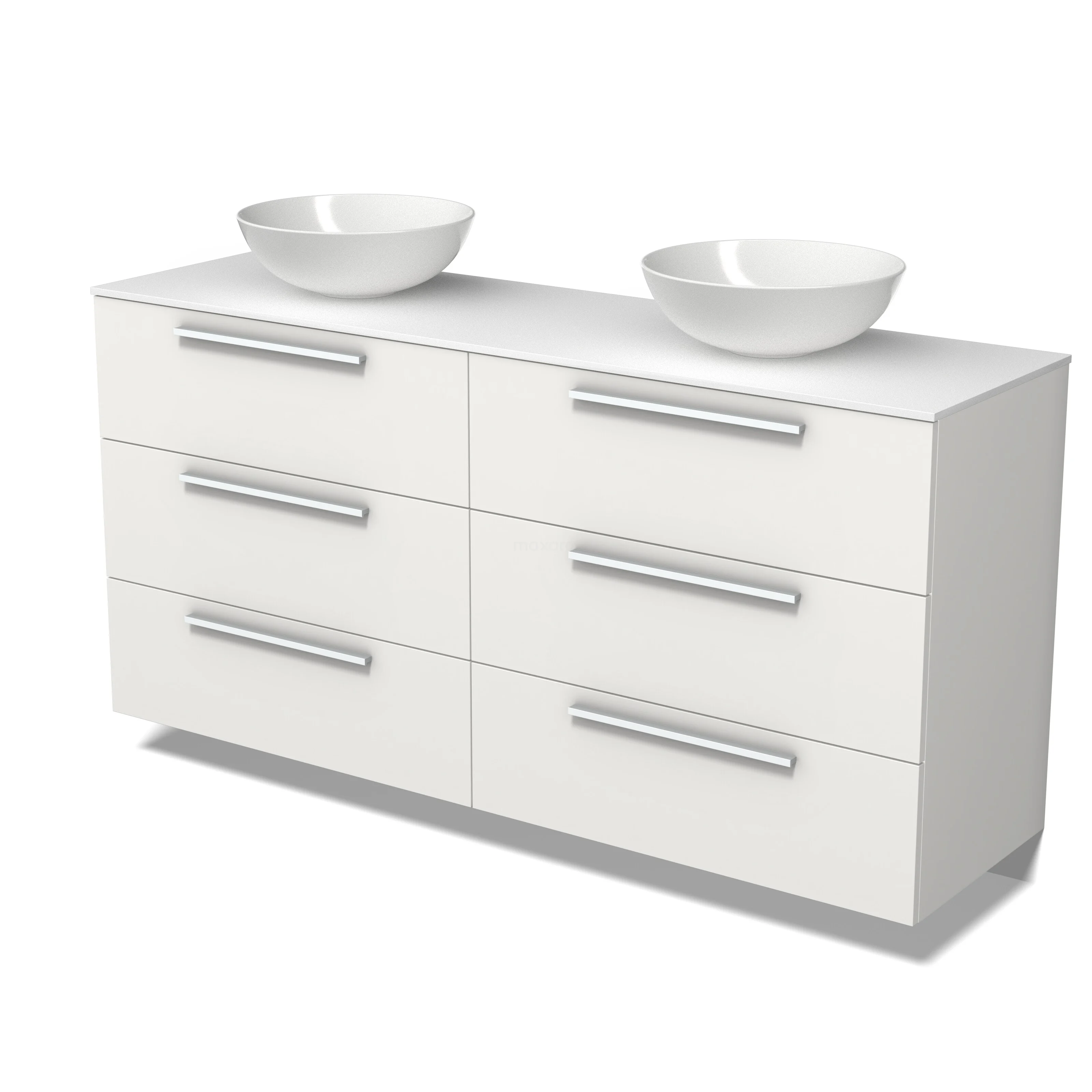 Modulo Plato Badkamermeubel voor waskom | 160 cm Mat wit Vlak front Solid surface blad 6 lades