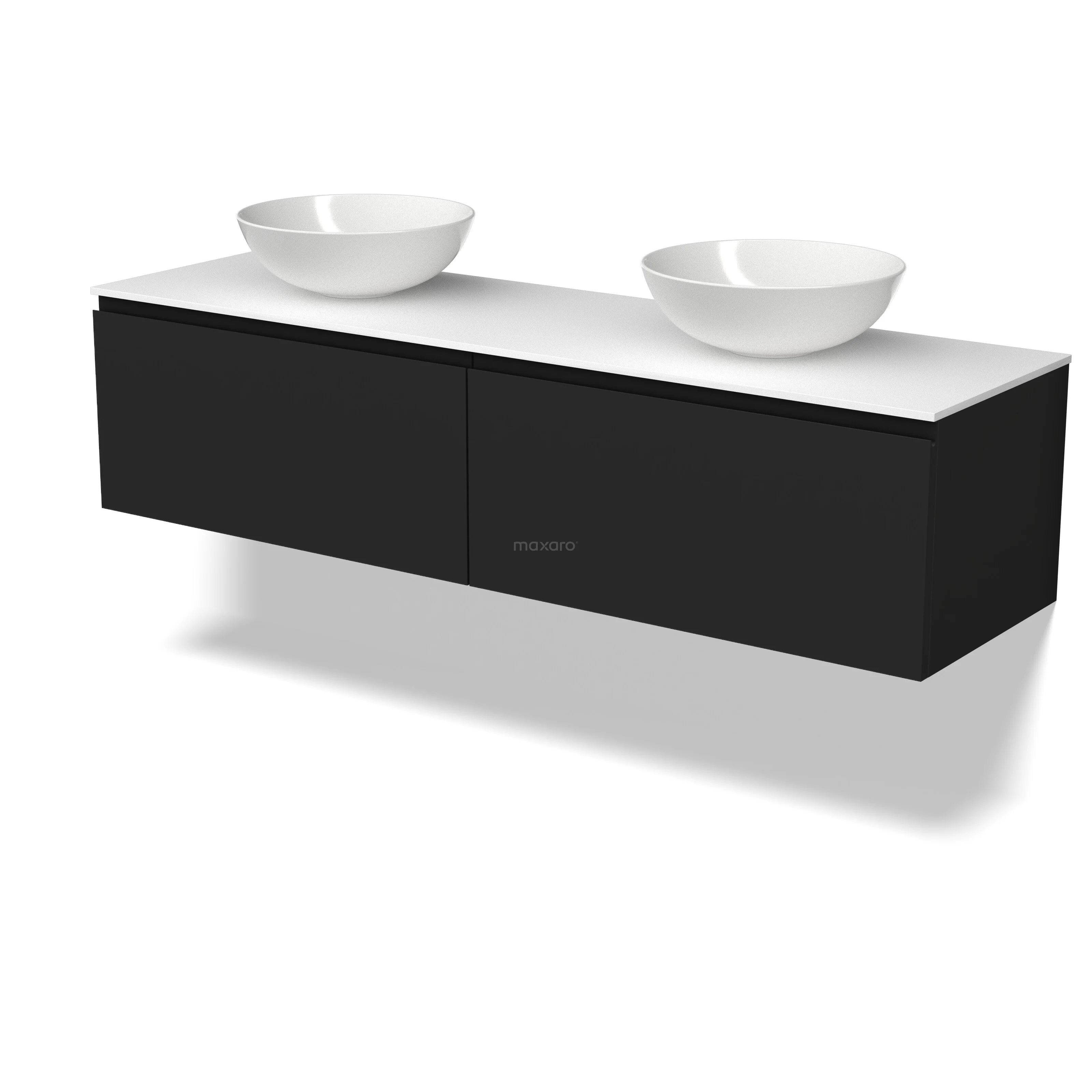 Modulo Plato Badkamermeubel voor waskom | 160 cm Mat zwart Greeploos front Solid surface blad 2 lades naast elkaar