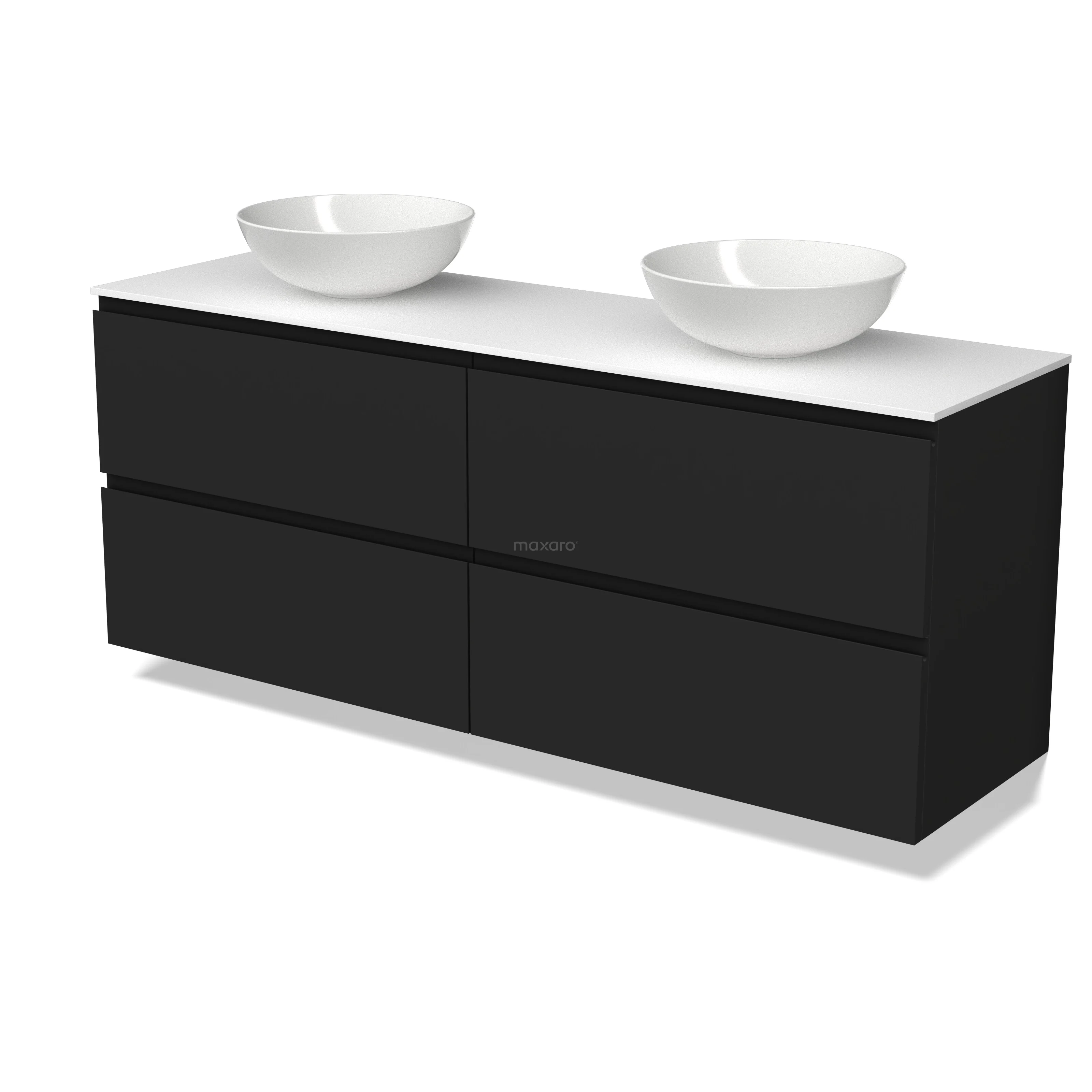 Modulo Plato Badkamermeubel voor waskom | 160 cm Mat zwart Greeploos front Solid surface blad 4 lades