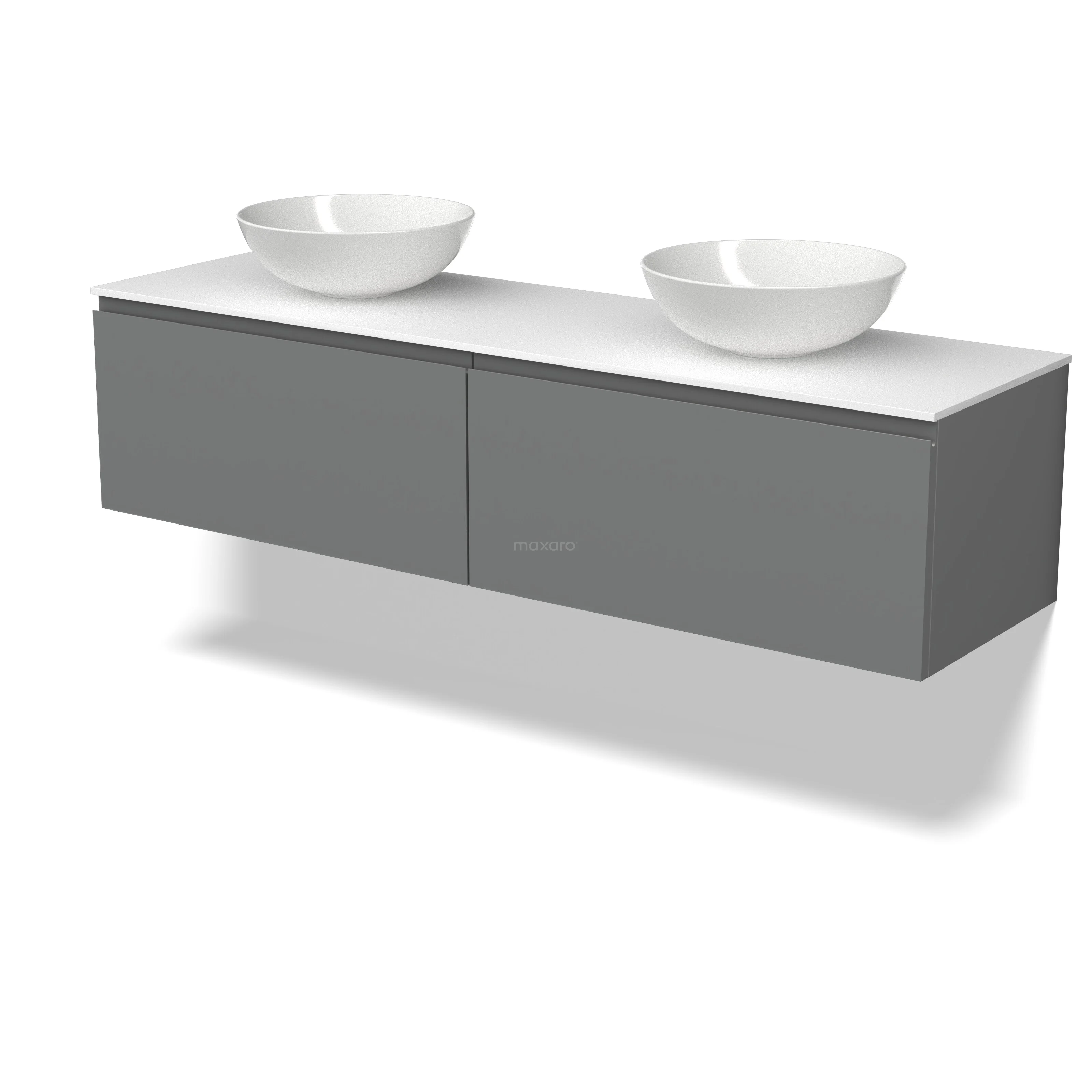 Modulo Plato Badkamermeubel voor waskom | 160 cm Middengrijs Greeploos front Solid surface blad 2 lades naast elkaar
