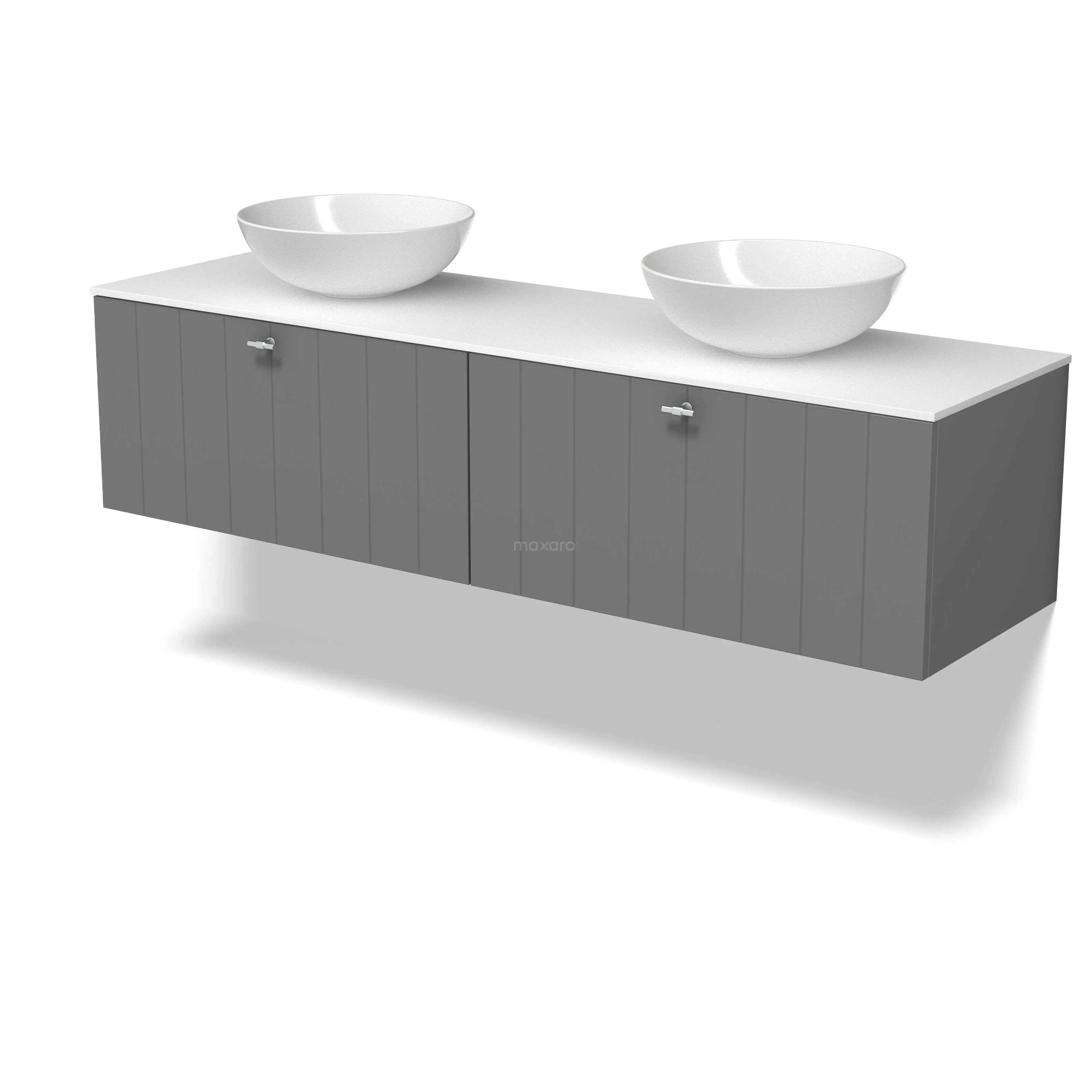 Modulo Plato Badkamermeubel voor waskom | 160 cm Middengrijs Lamel front Solid surface blad 2 lades naast elkaar