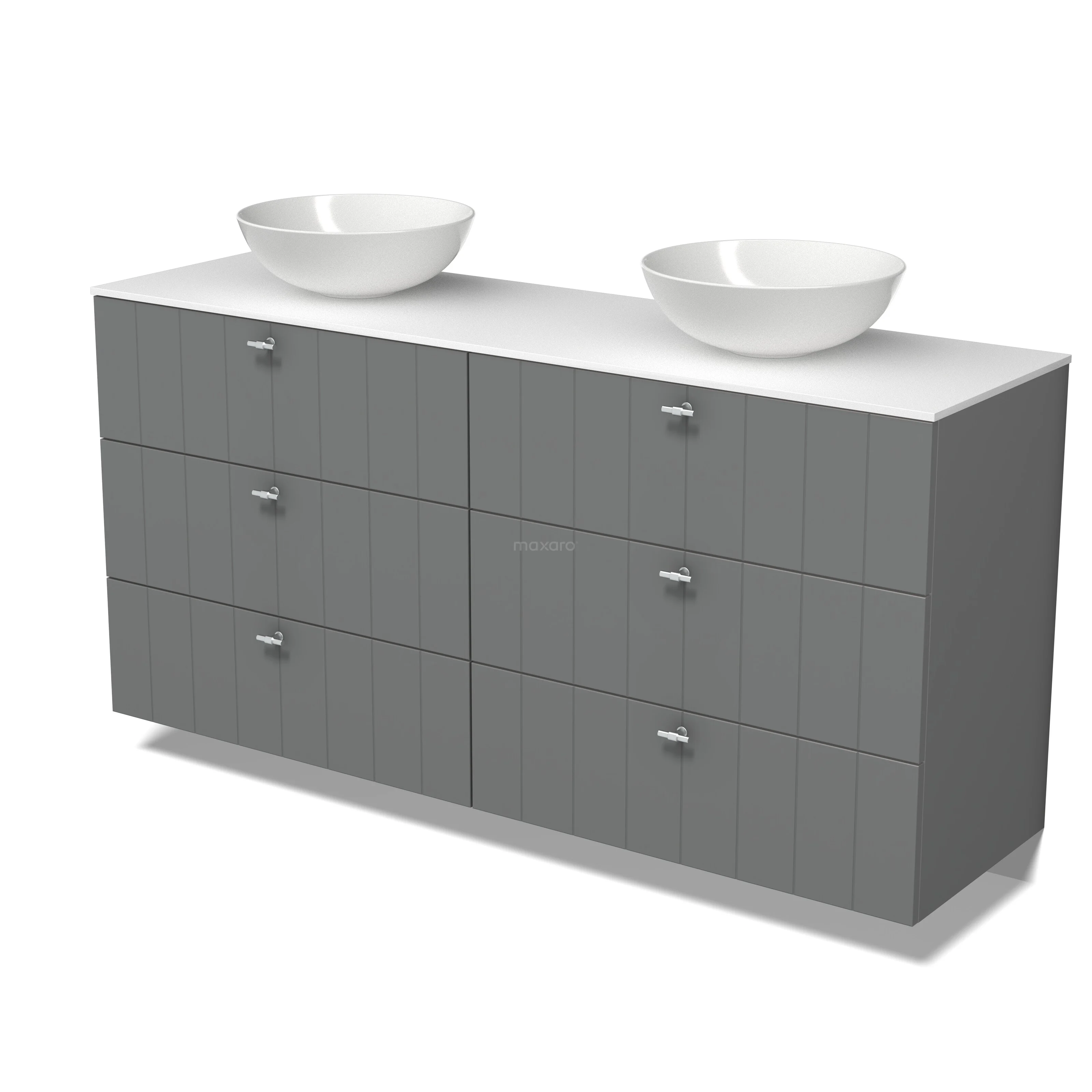 Modulo Plato Badkamermeubel voor waskom | 160 cm Middengrijs Lamel front Solid surface blad 6 lades