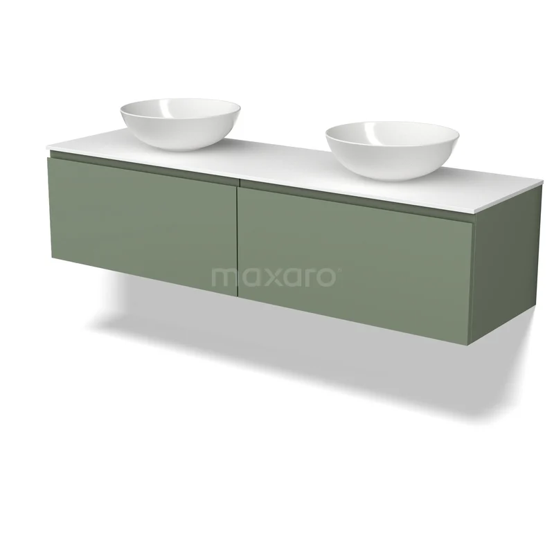 Modulo Plato Badkamermeubel voor waskom | 160 cm Saliegroen Greeploos front Solid surface blad 2 lades naast elkaar