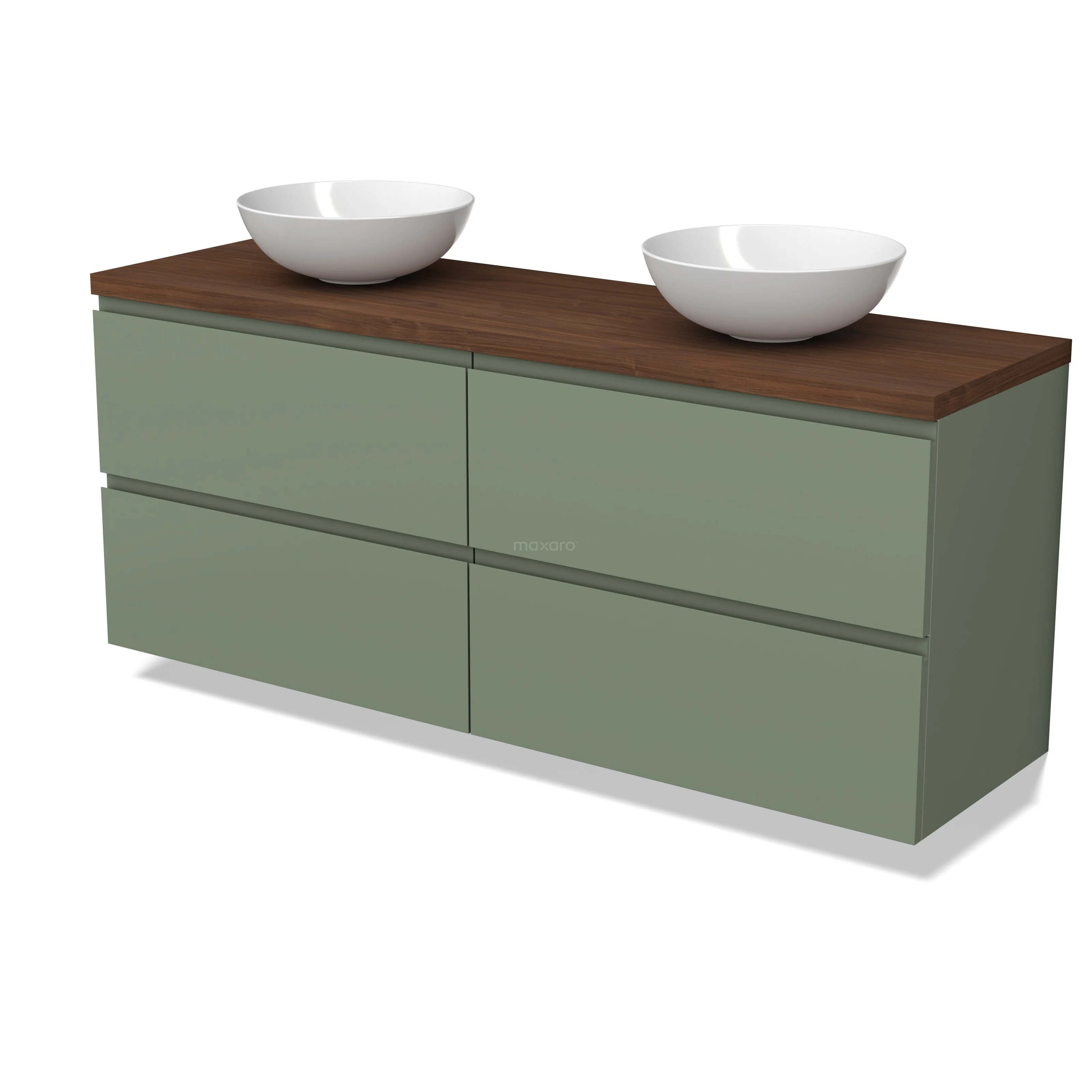 Modulo Plato Badkamermeubel voor waskom | 160 cm Saliegroen Greeploos front Walnoot blad 4 lades