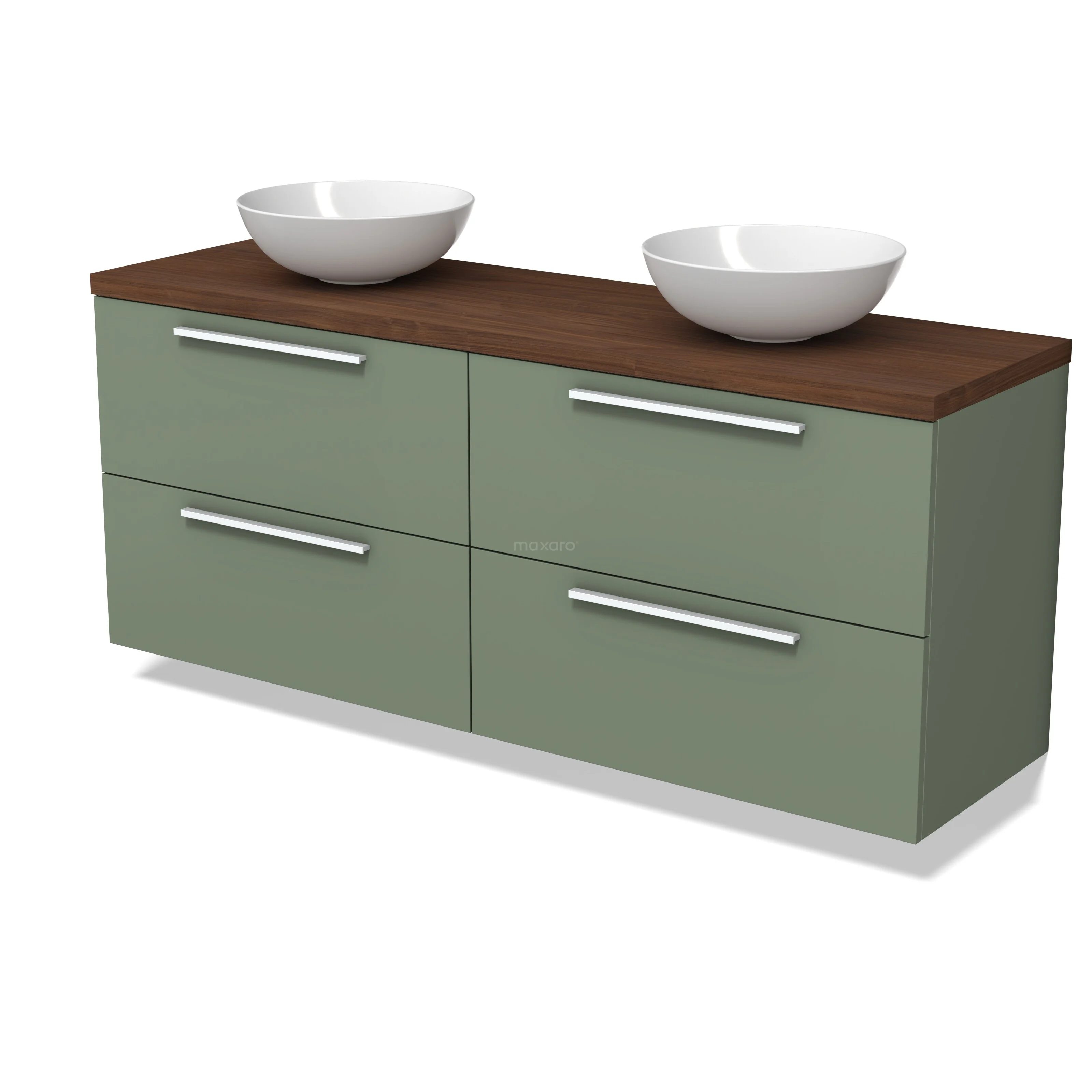 Modulo Plato Badkamermeubel voor waskom | 160 cm Saliegroen Vlak front Walnoot blad 4 lades