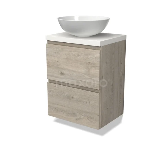 Modulo Plato Badkamermeubel voor waskom | 50 cm Lichtgrijs eiken Greeploos front Mat wit blad 2 lades onder elkaar