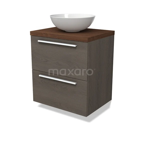 Modulo Plato Badkamermeubel voor waskom | 60 cm Donkerbruin eiken Vlak front Walnoot blad 2 lades onder elkaar
