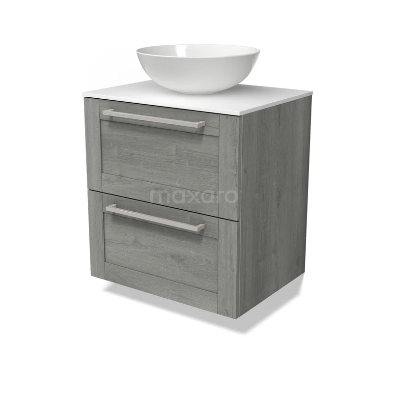 Modulo Plato Badkamermeubel voor waskom | 60 cm Grijs eiken Kader front Solid surface blad 2 lades onder elkaar